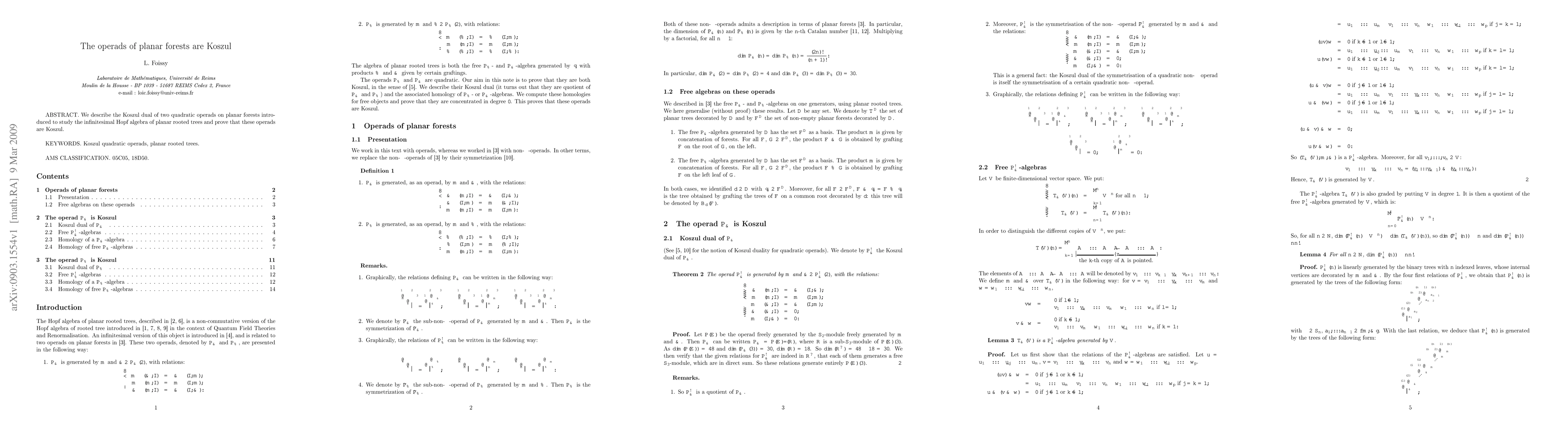 Summary: This paper investigates the Koszul dual of two quadratic operads related to planar forests and demonstrates that these operads are Koszul, providing insights into the structure of the infinitesimal Hopf algebra of planar rooted trees.