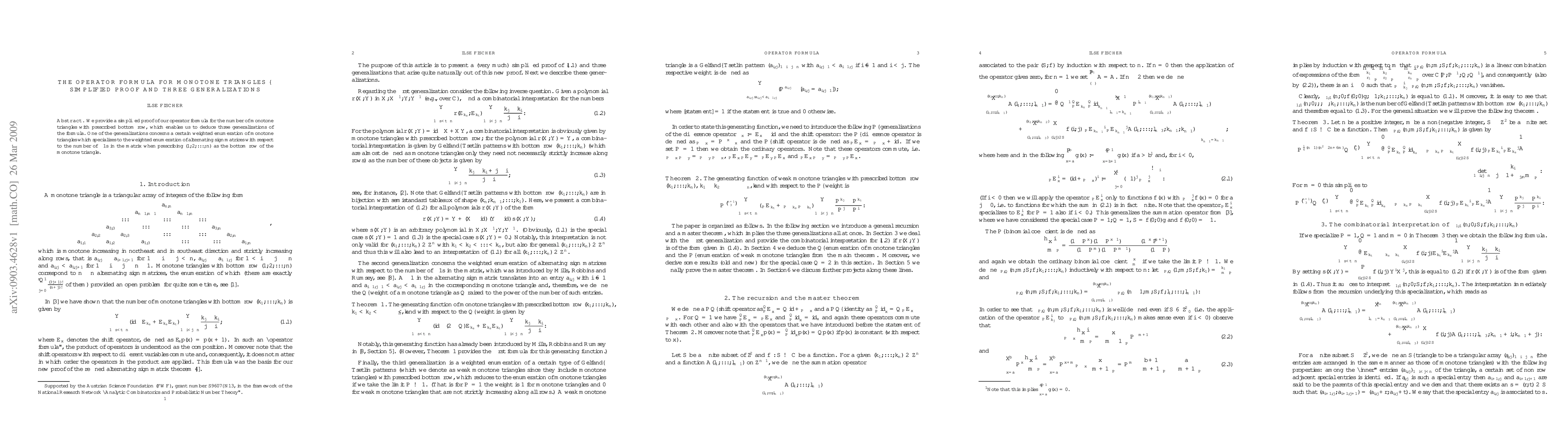 This paper presents a simplified proof of an operator formula for counting monotone triangles with a specified bottom row, leading to three generalizations, including a weighted enumeration that relates to the enumeration of alternating sign matrices.