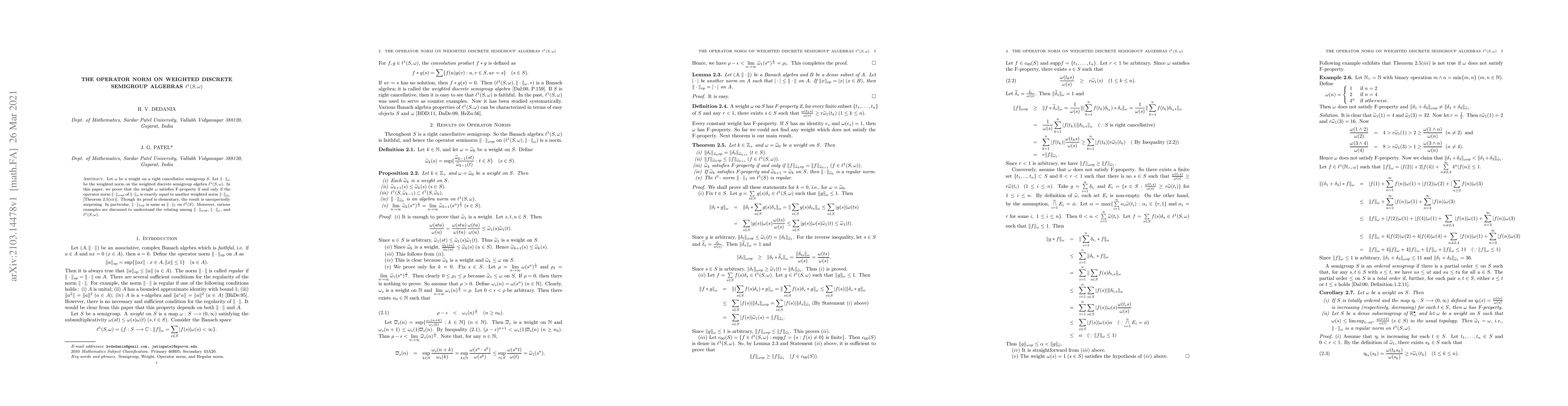 The paper proves that a weighted norm satisfies F-property if and only if its operator norm equals another weighted norm, with examples illustrating the relationship between these norms.