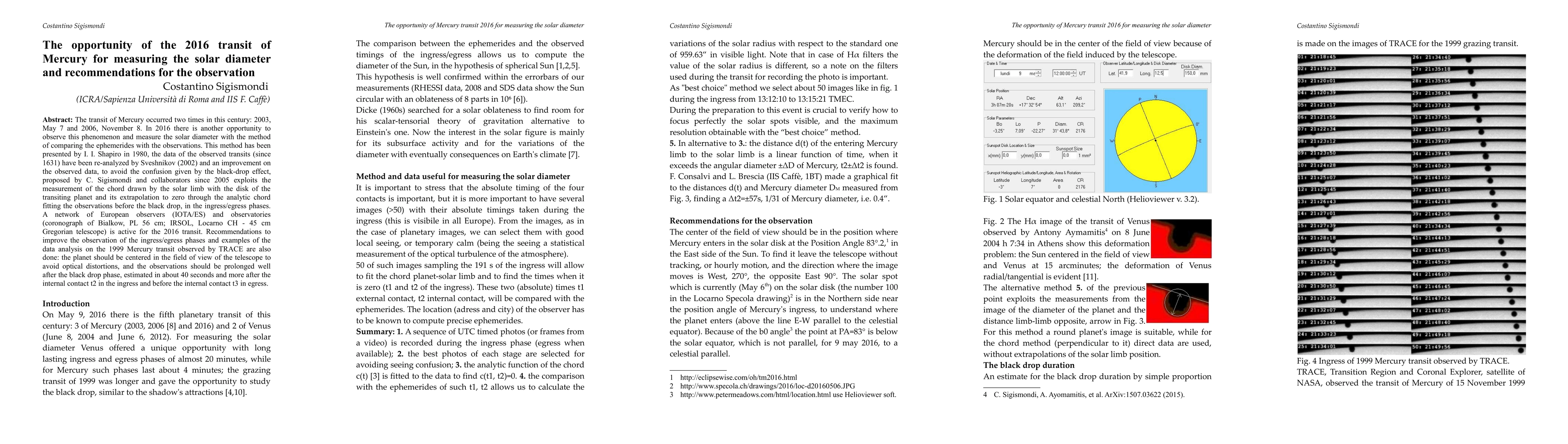 The 2016 Mercury transit offers a chance to measure the solar diameter using historical ephemerides and observations, with recommendations for observing techniques to improve accuracy.