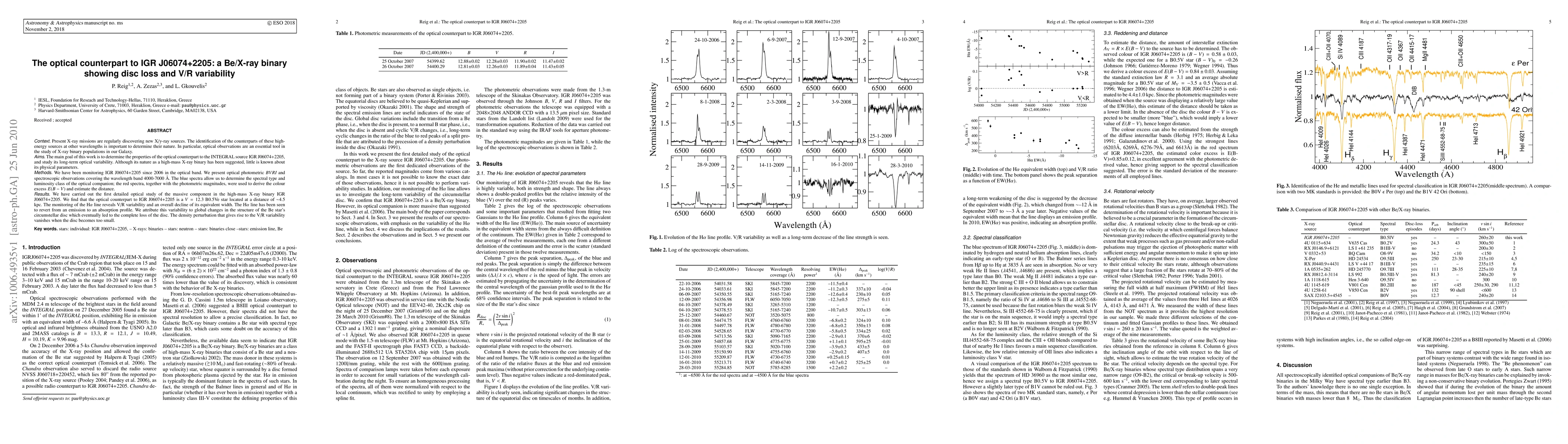 Researchers discovered the optical counterpart to IGR J06074+2205, a Be/X-ray binary showing disc loss and V/R variability in its companion star, which is a B-type main-sequence star located approximately 4.5 kpc away from Earth.
