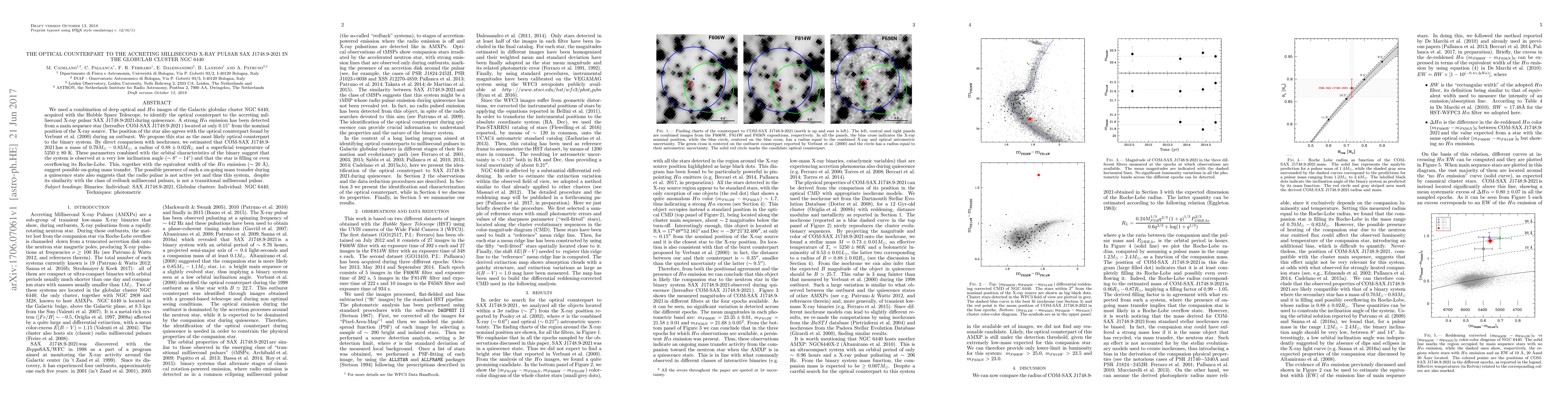 This study identifies the optical counterpart to the accreting millisecond X-ray pulsar SAX J1748.9-2021 in NGC 6440 using Hubble Space Telescope images, proposing a main sequence star as the likely counterpart. The star exhibits strong Halpha emission, suggesting ongoing mass transfer, and is estimated to have a mass between 0.70 and 0.83 solar masses, indicating a low inclination angle and potential Roche Lobe overflow.