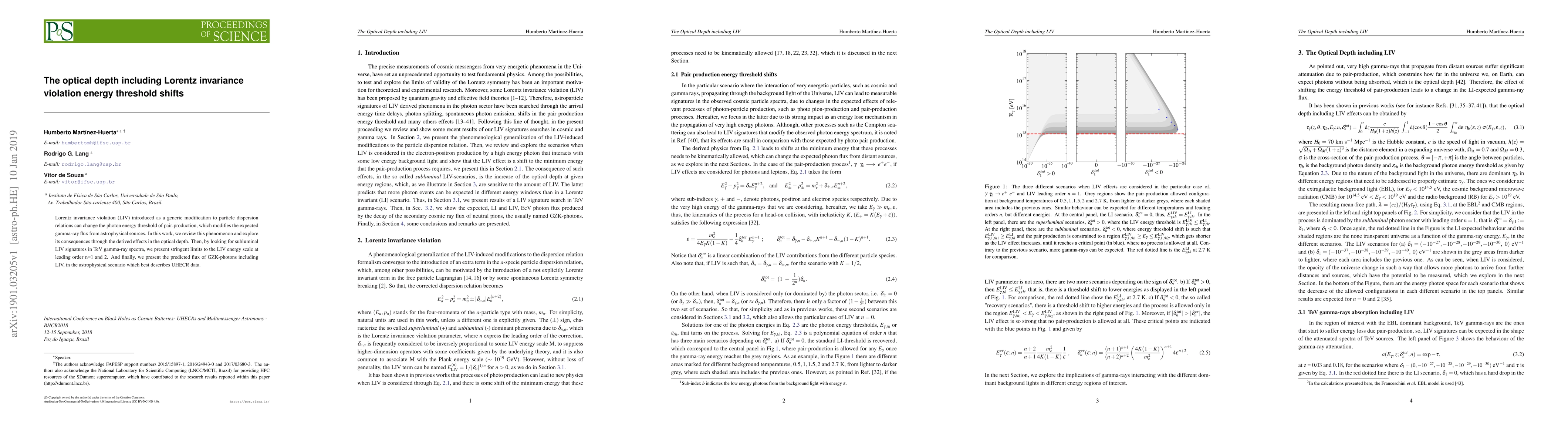 Lorentz invariance violation (LIV) introduced as a generic modification to particle dispersion relations can change the photon energy threshold of pair-production, which modifies the expected gamma-ray flux from astrophysical sources. In this work, we review this phenomenon and explore its consequences through the derived effects in the optical depth. Then, by looking for subluminal LIV signatures in TeV gamma-ray spectra, we present stringent limits to the LIV energy scale at leading order n=1 and 2. And finally, we present the predicted flux of GZK-photons including LIV, in the astrophysical scenario which best describes UHECR data.