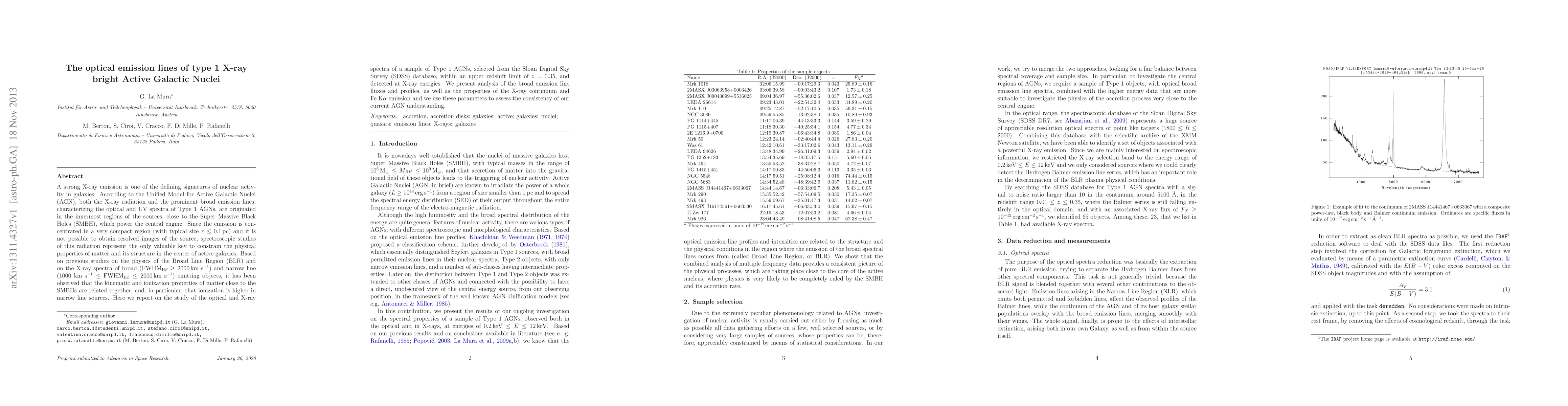 Researchers studied Type 1 X-ray bright Active Galactic Nuclei to understand the physical properties of matter near Super Massive Black Holes. They analyzed optical and X-ray spectra to assess consistency with current AGN understanding.