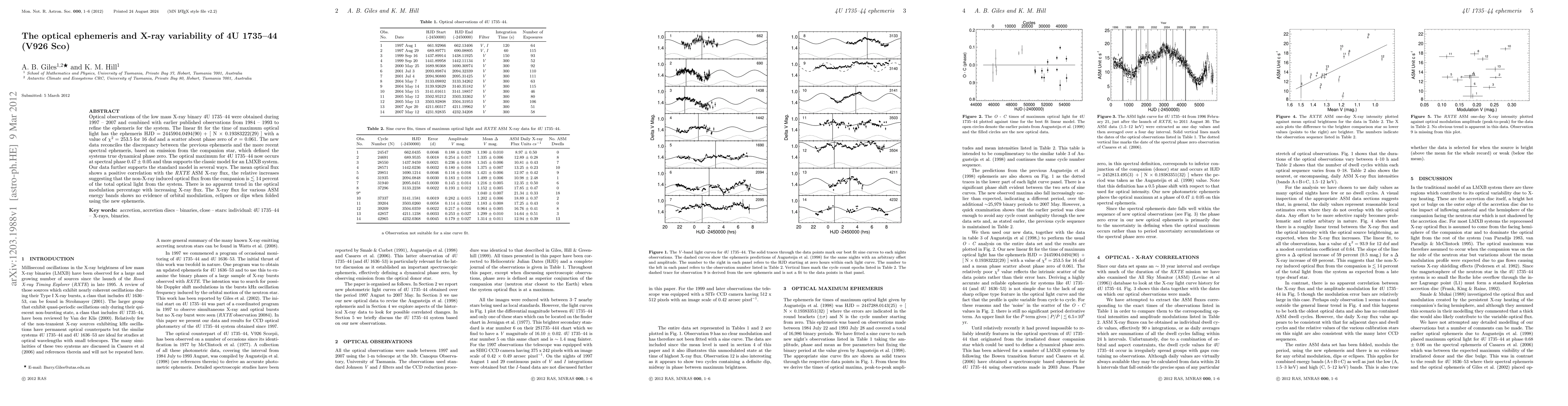 Optical observations of the low mass X-ray binary 4U 1735-44 were obtained during 1997-2007 and combined with earlier published observations from 1984-1993 to refine the ephemeris for the system. The linear fit for the time of maximum optical light has the ephemeris HJD = 2445904.0494(90) + [ N x 0.19383222(29)] with a value of chi^2 = 253.5$ for 16 dof and a scatter about phase zero of sigma = 0.061. The new data reconciles the discrepancy between the previous ephemeris and the more recent spectral ephemeris based on emission from the companion star which defined the systems true dynamical phase zero. The optical maximum for 4U 1735-44 now occurs at spectral phase 0.47 \pm 0.05 and thus supports the classic model for an LMXB system. Our data further supports the standard model in several ways. The mean optical flux shows a positive correlation with the RXTE ASM X-ray flux, the relative increases suggesting that the non-X-ray induced optical flux from the companion is < 14 percent of the total optical light from the system. There is no apparent trend in the optical modulation percentage with increasing X-ray flux. The X-ray flux for various ASM energy bands shows no evidence of orbital modulation, eclipses or dips when folded using the new ephemeris.