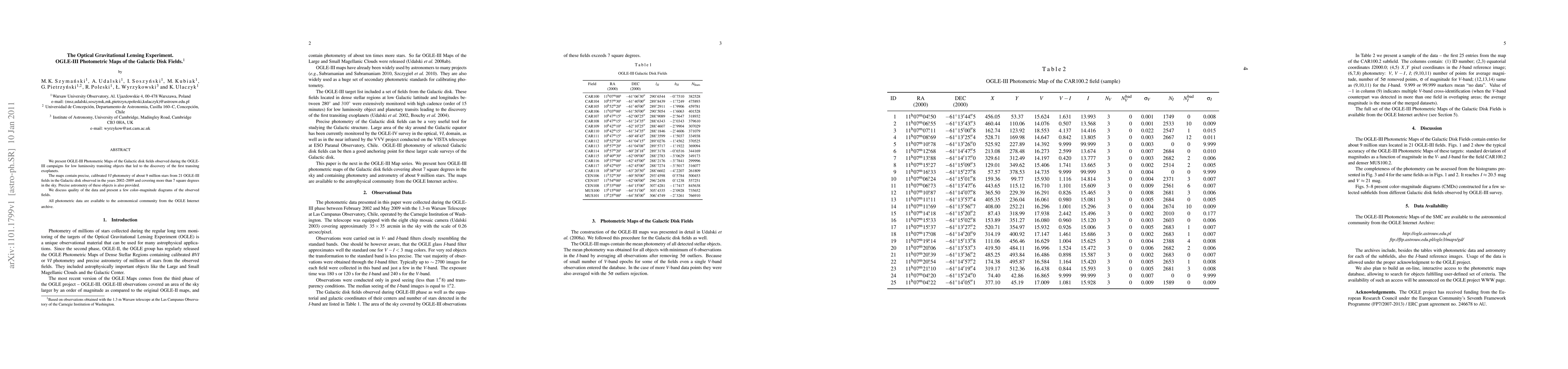 The OGLE-III project produced detailed photometric maps of 21 Galactic disk fields, capturing precise VI photometry and astrometry for about 9 million stars, facilitating the discovery of transiting exoplanets. The data is publicly accessible for further astronomical research.