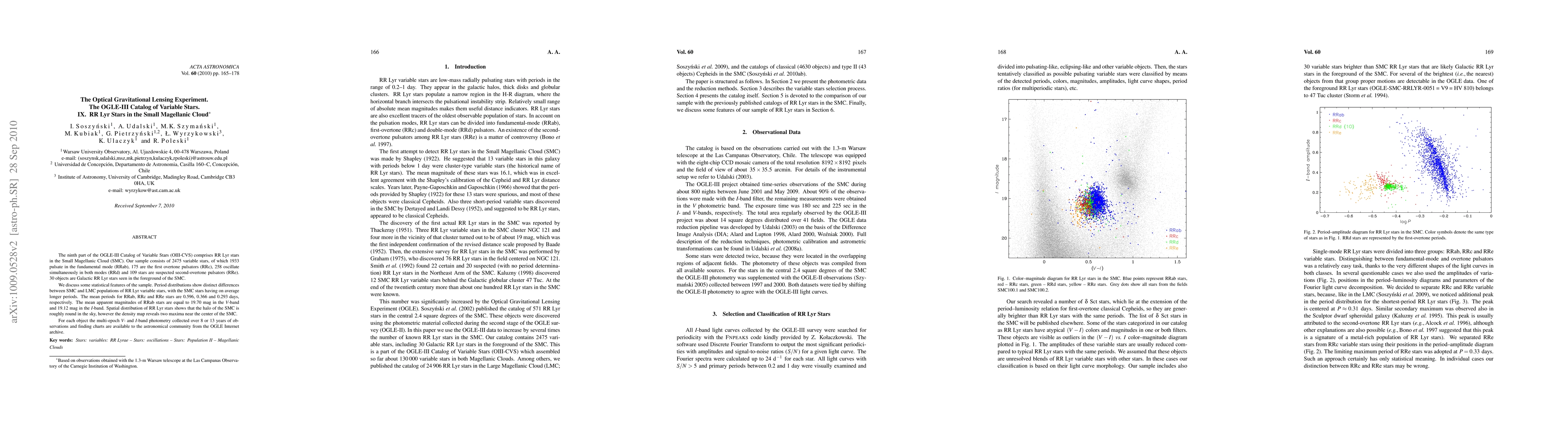 This paper presents the ninth part of the OGLE-III Catalog of Variable Stars, focusing on RR Lyrae stars in the Small Magellanic Cloud (SMC). It identifies 2475 variable stars, with distinct period distributions and spatial distributions compared to the Large Magellanic Cloud.