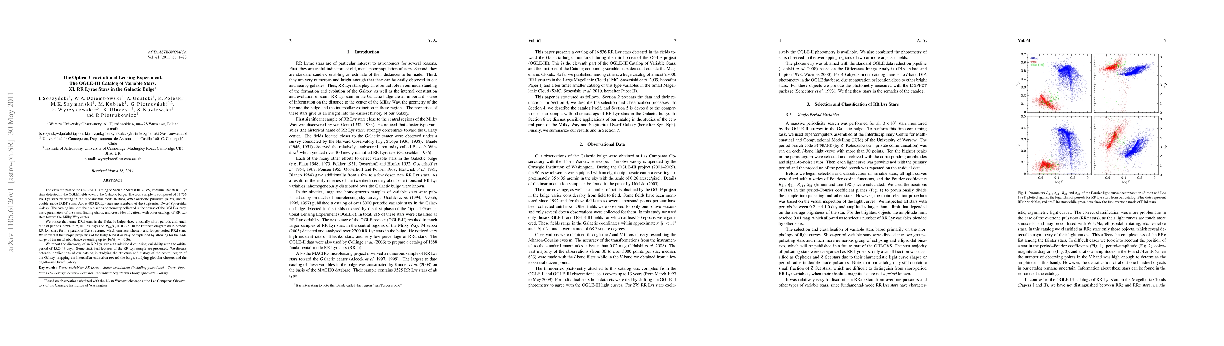 The OGLE-III Catalog of Variable Stars includes 16,836 RR Lyrae stars in the Galactic bulge, comprising RRab, RRc, and RRd pulsators, with some stars identified as members of the Sagittarius Dwarf Spheroidal Galaxy. The catalog reveals unique properties of RRd stars, potentially due to a wide metal abundance range, and includes a discovery of an eclipsing RR Lyrae star.