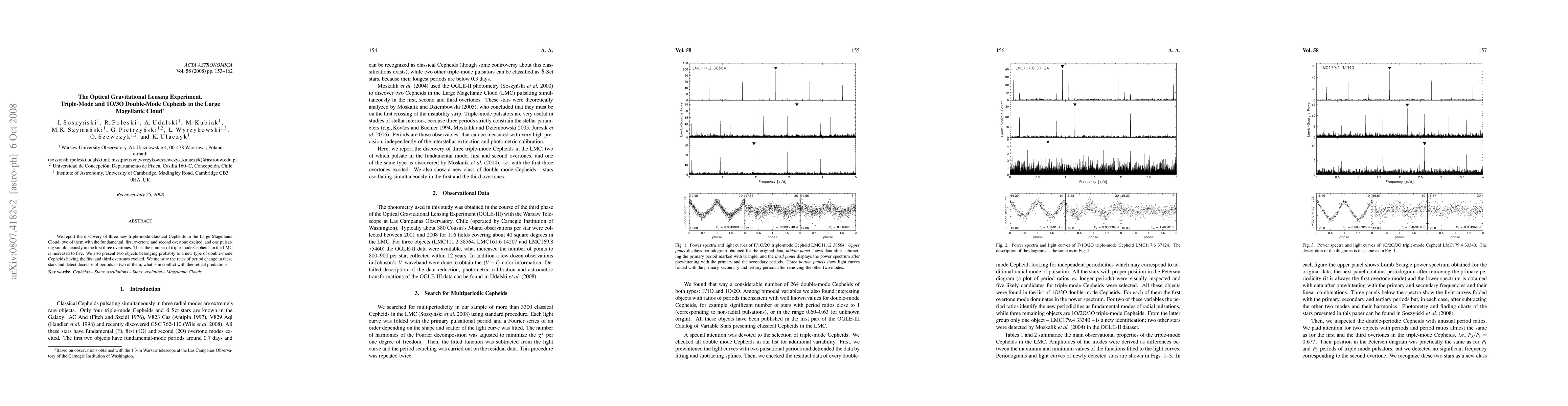The research discovers three new triple-mode Cepheids in the Large Magellanic Cloud, increasing the total to five, and identifies two probable new types of double-mode Cepheids. The study also finds period decreases in two stars, conflicting with theoretical predictions.