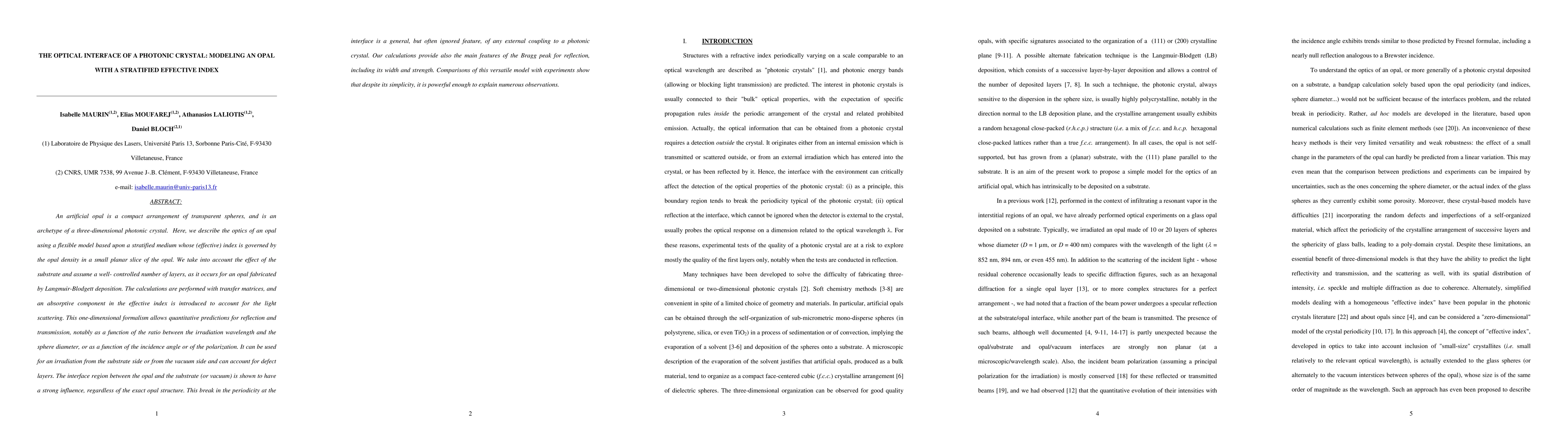 This research models the optics of an artificial opal, a three-dimensional photonic crystal, using a stratified effective index approach. The study quantitatively predicts reflection and transmission properties, emphasizing the significant impact of the opal-substrate interface on photonic behavior.
