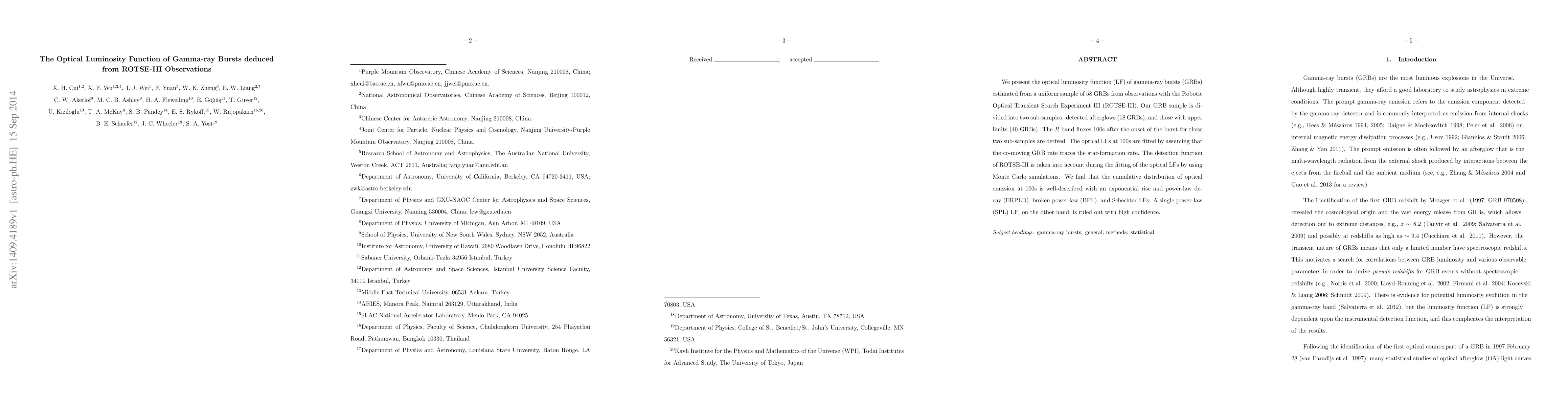This study estimates the optical luminosity function of gamma-ray bursts from 58 GRB observations, finding that the LFs follow an exponential rise and power-law decay (ERPLD), broken power-law (BPL), or Schechter LFs, but rule out a single power-law LF with high confidence.