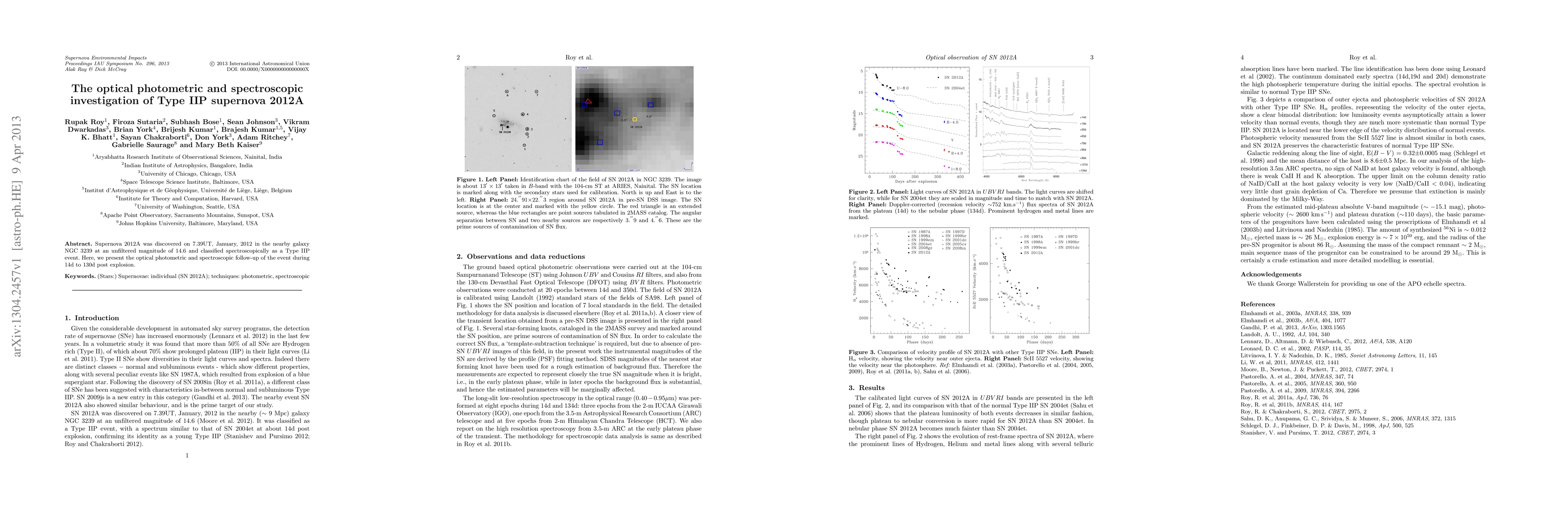 This research paper presents a detailed follow-up study of Supernova 2012A, a Type IIP supernova, using optical photometry and spectroscopy from 14 days to 130 days post-explosion. The findings provide new insights into the evolution and characteristics of this event.