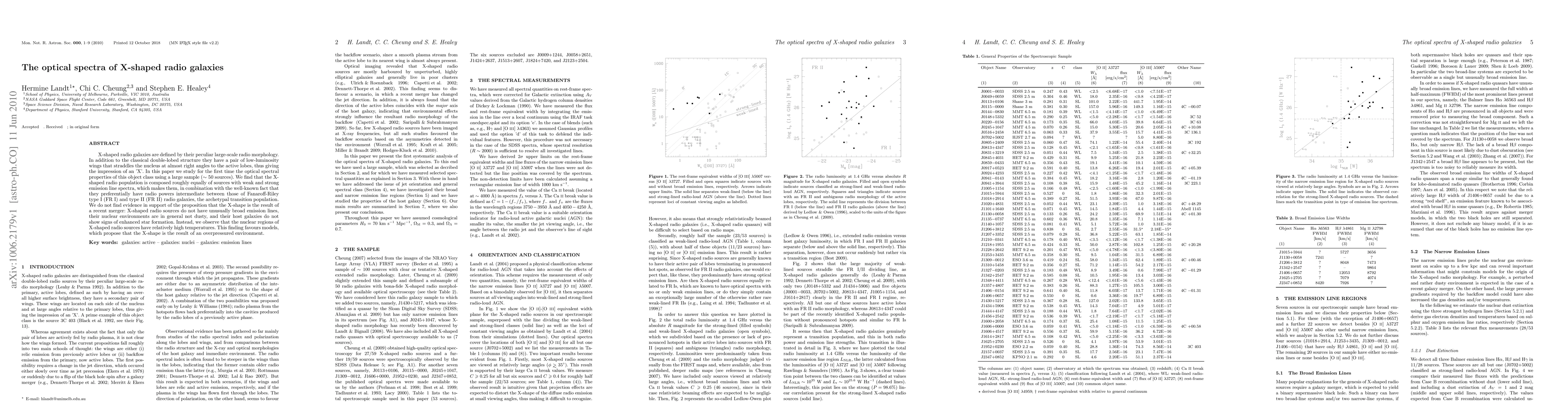 Researchers studied 50 X-shaped radio galaxies, finding they have similar optical emission line spectra to FR I and II galaxies, ruling out recent merger as cause for their unique shape. Instead, high nuclear temperatures suggest an overpressured environment is the likely explanation.