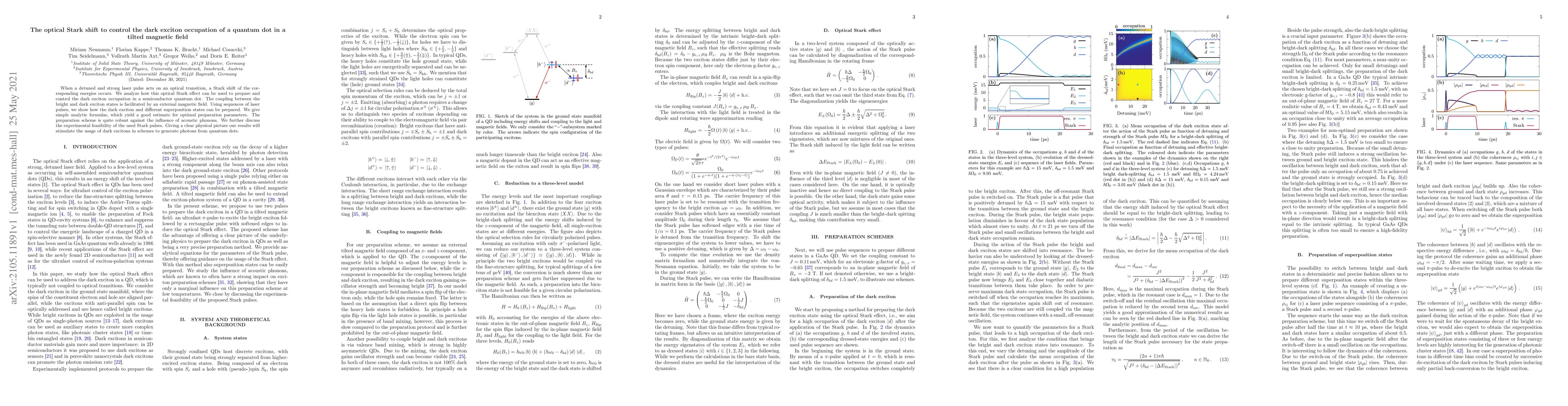 This paper explores the optical Stark effect to manipulate dark exciton states in semiconductor quantum dots, utilizing laser pulses and magnetic fields. The study provides analytic formulas for optimal control parameters and discusses the robustness of the method against acoustic phonons, highlighting its potential for photon generation applications.