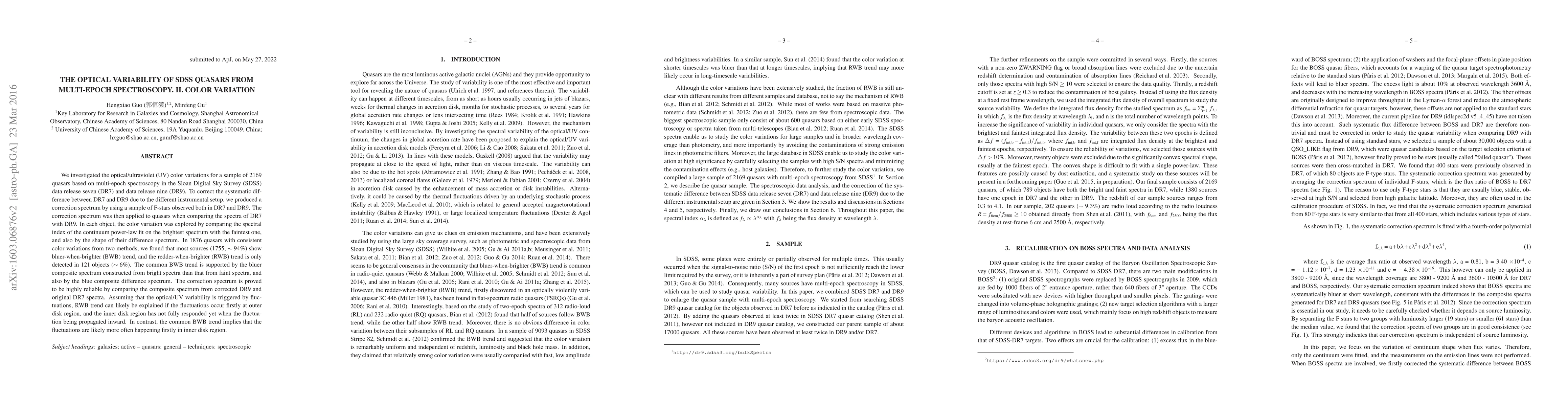 A study of 2169 quasars found that most exhibit a bluer-when-brighter color trend when comparing brighter to faint spectra, while about 6% show a redder-when-brighter trend.