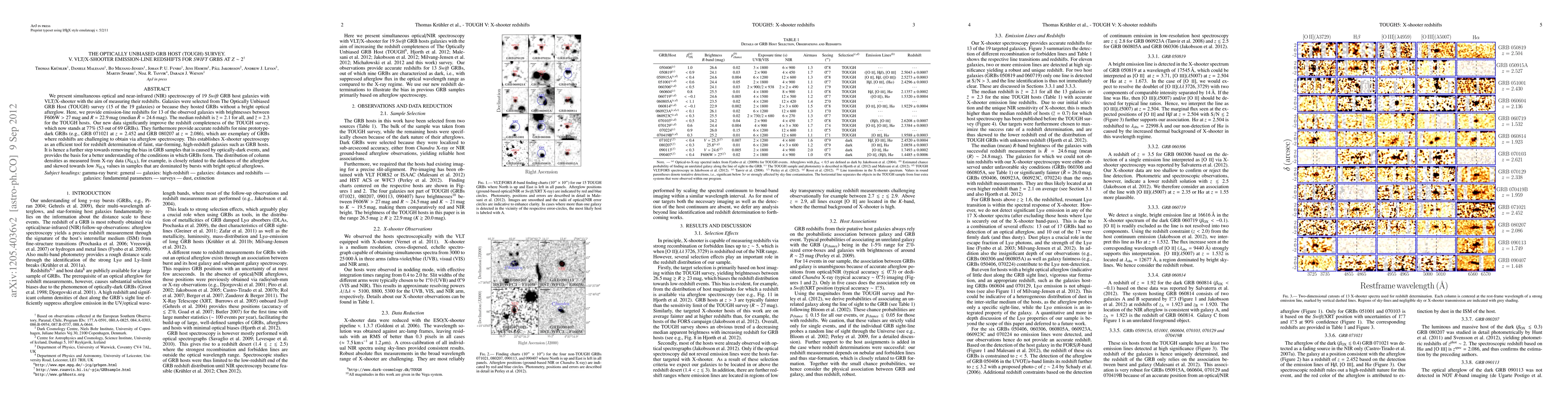 The research presents spectroscopic observations of 19 Swift GRB host galaxies using VLT/X-shooter, aiming to measure their redshifts, particularly for dark GRBs without bright optical afterglows.