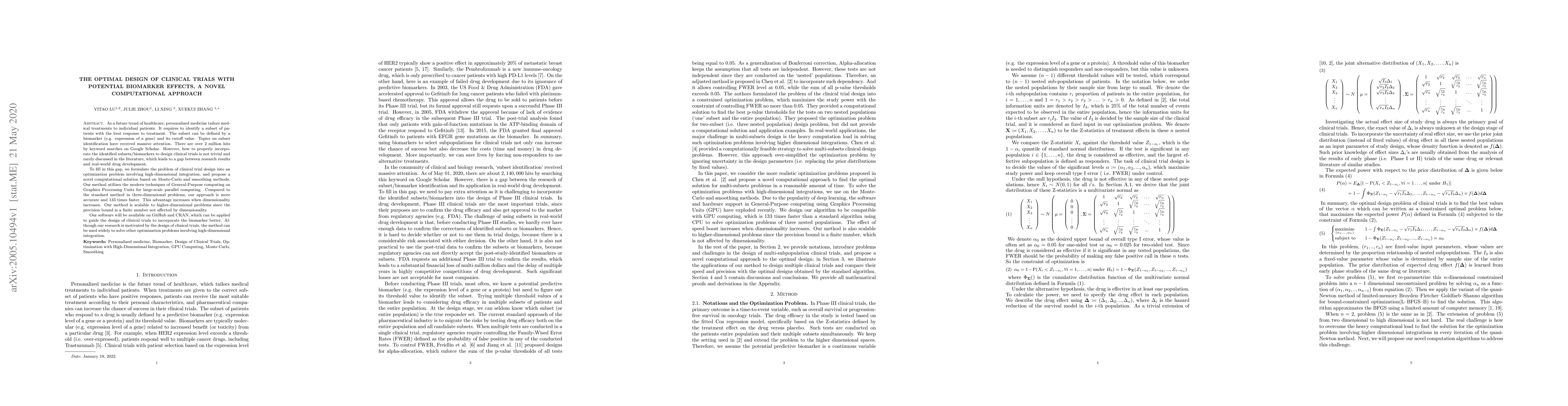 A new computational approach designed clinical trials with biomarkers, improving accuracy 133 times over traditional methods while being scalable to higher dimensions.
