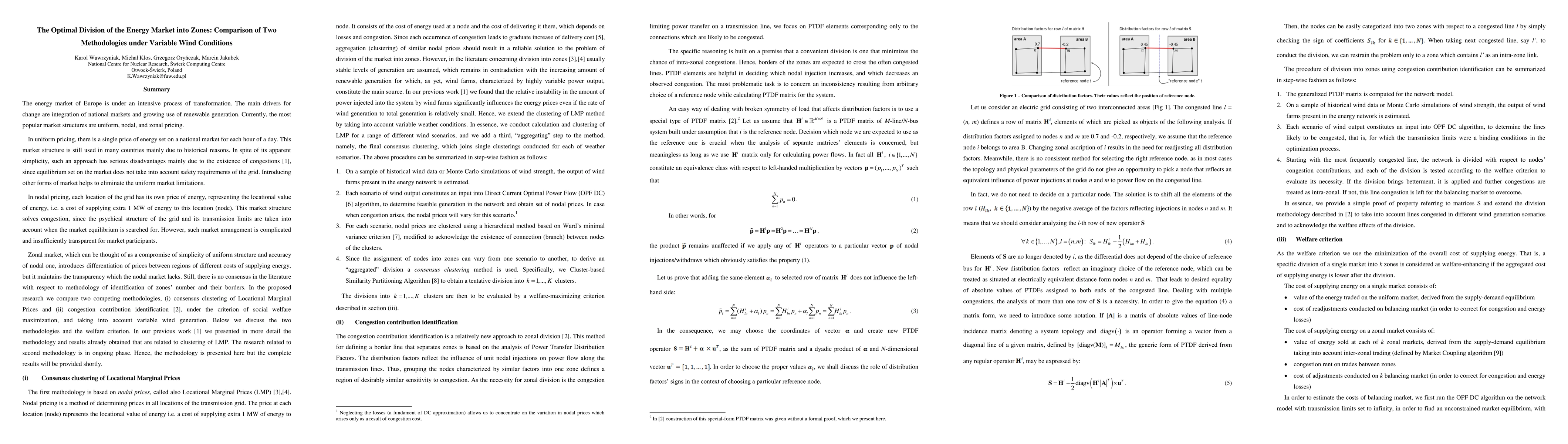 This paper compares two methodologies for dividing the energy market into zones to maximize social welfare: consensus clustering of Locational Marginal Prices and congestion contribution identification. The optimal division is determined by comparing the cost of supplying energy in a uniform market versus a k-zone market.