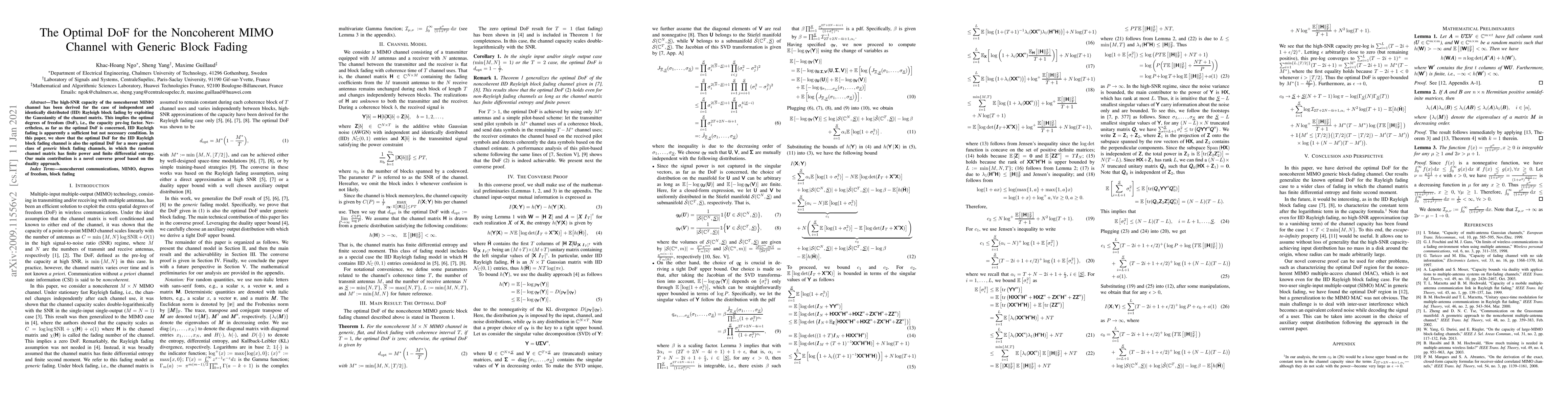 This paper derives the optimal degrees of freedom (DoF) for noncoherent MIMO channels with generic block fading, showing that the optimal DoF for independent and identically distributed (IID) Rayleigh fading also applies to a broader class of fading channels with finite power and differential entropy. The key contribution is a novel converse proof using the duality approach.