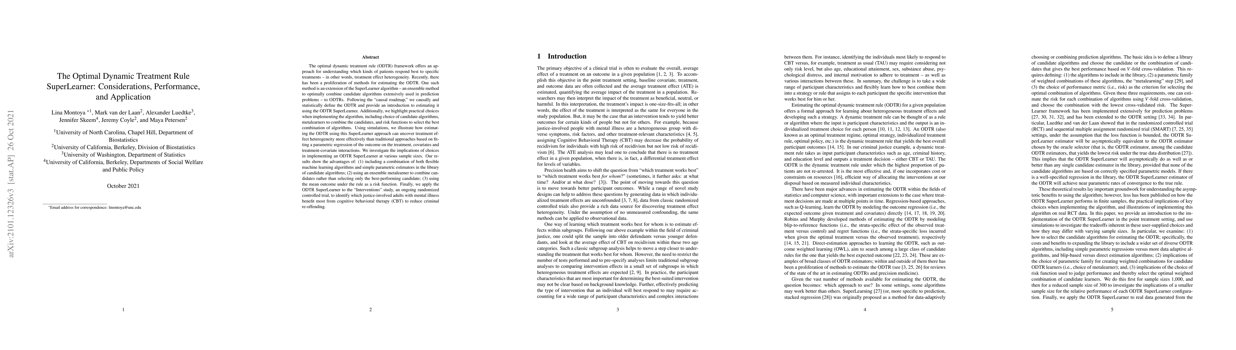The optimal dynamic treatment rule (ODTR) framework offers an approach for understanding which kinds of patients respond best to specific treatments -- in other words, treatment effect heterogeneity. Recently, there has been a proliferation of methods for estimating the ODTR. One such method is an extension of the SuperLearner algorithm -- an ensemble method to optimally combine candidate algorithms extensively used in prediction problems -- to ODTRs. Following the "causal roadmap," we causally and statistically define the ODTR and provide an introduction to estimating it using the ODTR SuperLearner. Additionally, we highlight practical choices when implementing the algorithm, including choice of candidate algorithms, metalearners to combine the candidates, and risk functions to select the best combination of algorithms. Using simulations, we illustrate how estimating the ODTR using this SuperLearner approach can uncover treatment effect heterogeneity more effectively than traditional approaches based on fitting a parametric regression of the outcome on the treatment, covariates and treatment-covariate interactions. We investigate the implications of choices in implementing an ODTR SuperLearner at various sample sizes. Our results show the advantages of: (1) including a combination of both flexible machine learning algorithms and simple parametric estimators in the library of candidate algorithms; (2) using an ensemble metalearner to combine candidates rather than selecting only the best-performing candidate; (3) using the mean outcome under the rule as a risk function. Finally, we apply the ODTR SuperLearner to the "Interventions" study, an ongoing randomized controlled trial, to identify which justice-involved adults with mental illness benefit most from cognitive behavioral therapy (CBT) to reduce criminal re-offending.