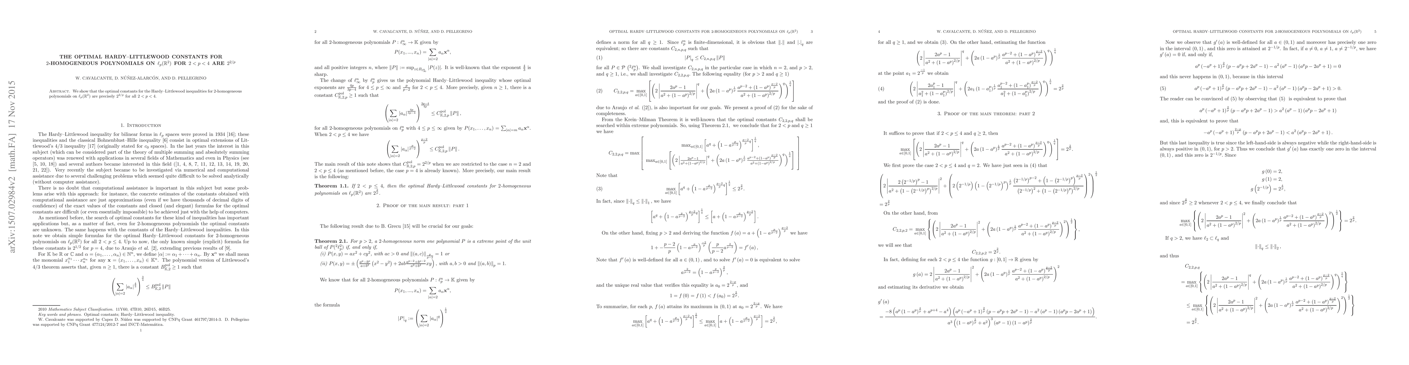 The paper presents a detailed proof of the optimal Hardy-Littlewood constants for 2-homogeneous polynomials on ℓp(R^2) for 2 < p ≤ 4, utilizing extreme polynomials and a theorem by B. Grecu.