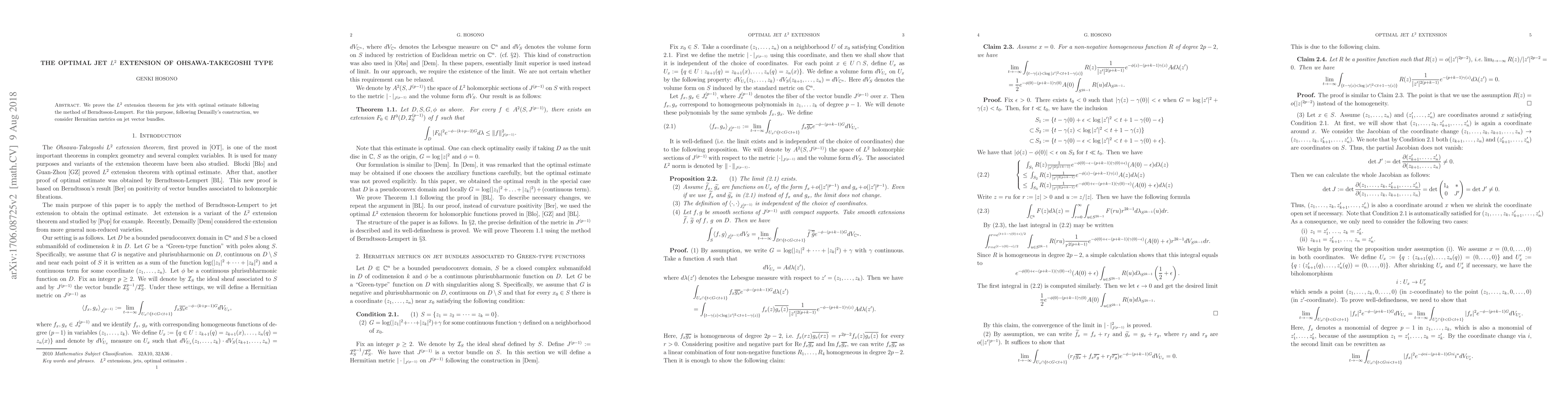 Summary: This paper proves an optimal $L^2$ extension theorem for jets using the method of Berndtsson-Lempert and Hermitian metrics on jet vector bundles, following Demailly's construction. The result provides an optimal estimate for the extension of jets.