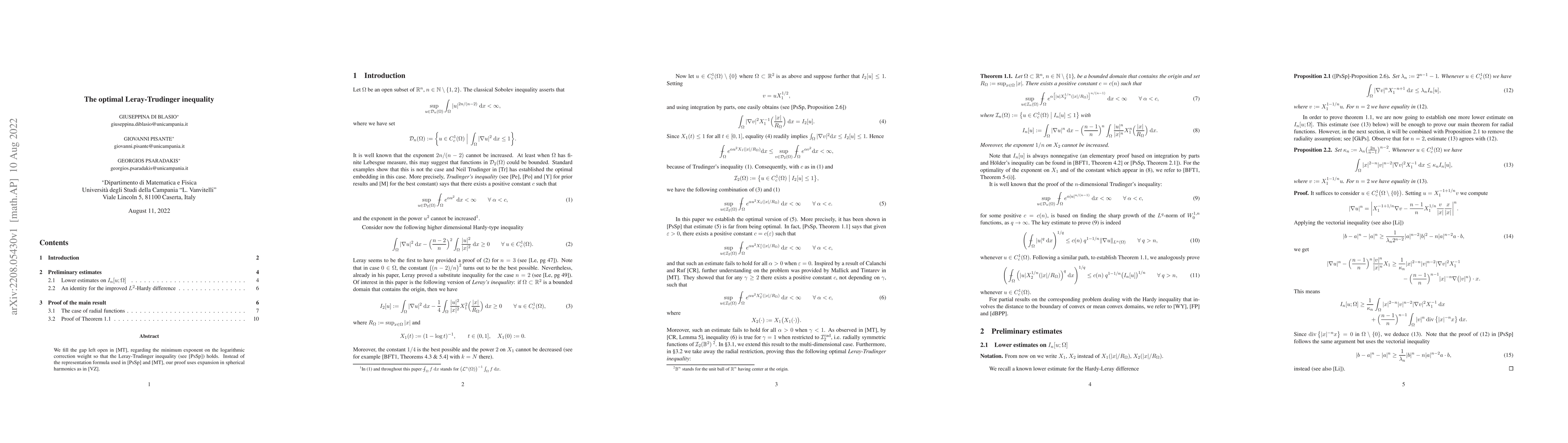 This paper determines the minimum exponent for the logarithmic correction weight in the Leray-Trudinger inequality, addressing a gap left by previous work. It employs a proof technique using expansion in spherical harmonics, differing from the representation formula used in earlier studies.