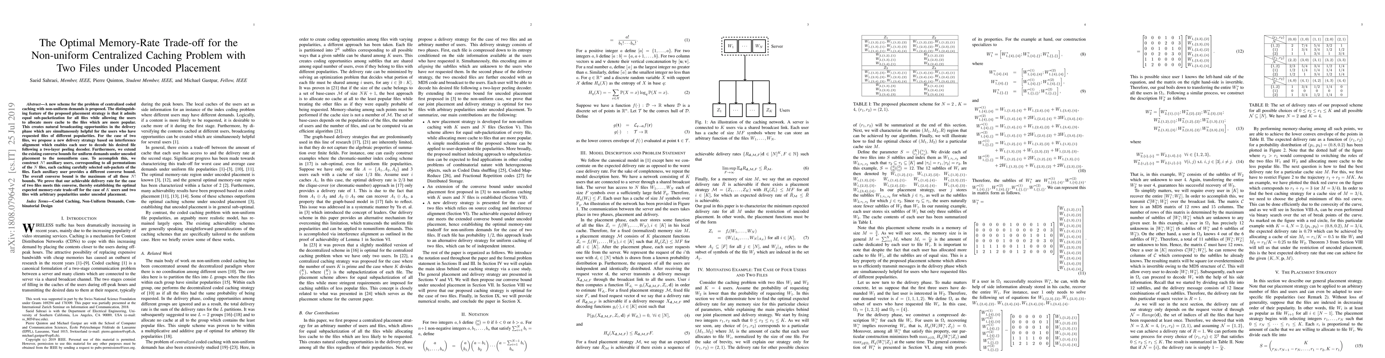 This paper proposes a new caching scheme for centralized coded caching with non-uniform demands, allowing unequal cache allocation for different file popularities. It achieves optimal memory-rate trade-off for two files using interference alignment and a two-layer peeling decoder, extending converse bounds for non-uniform demands.