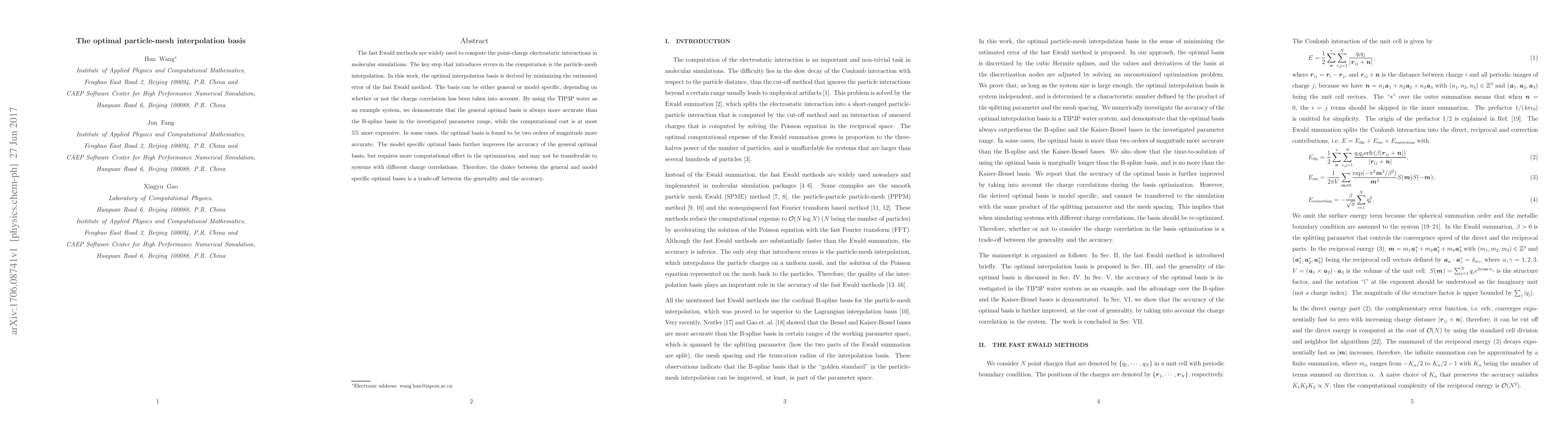 This paper derives the optimal particle-mesh interpolation basis for fast Ewald methods, showing that the general optimal basis is more accurate than the B-spline basis, with computational costs only 5% higher. The model-specific optimal basis offers further accuracy but requires more computational effort and may not be transferable across systems.