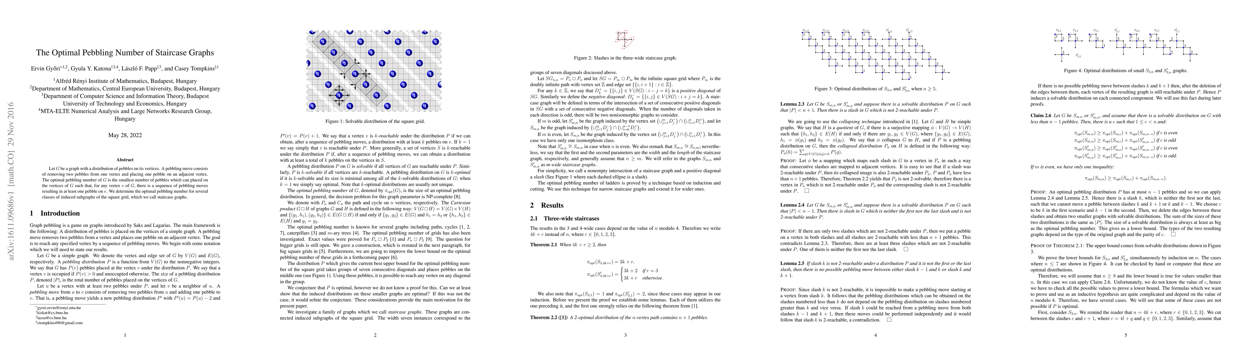 This paper determines the optimal pebbling number for staircase graphs, which are induced subgraphs of the square grid. The optimal pebbling number is the minimum number of pebbles needed to ensure that any vertex can be reached through a sequence of pebbling moves.