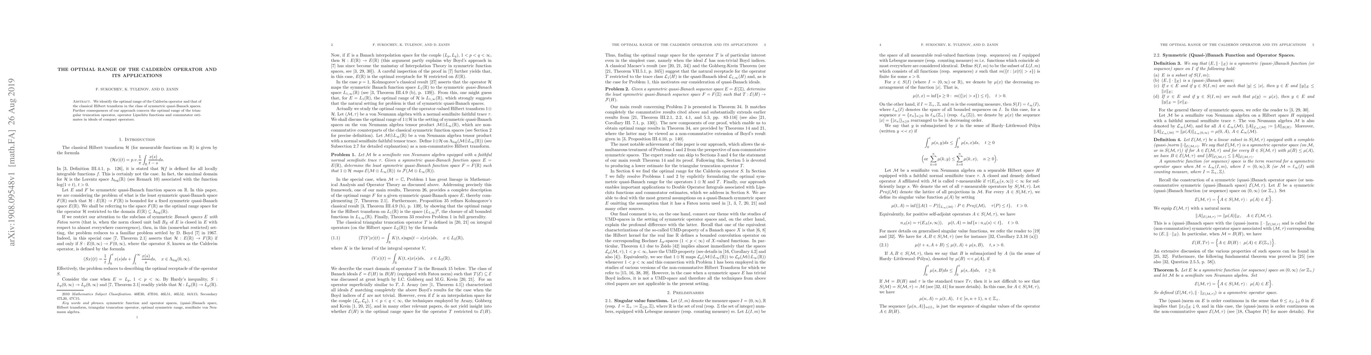 Summary: The paper identifies the optimal range for the Calderón operator and the classical Hilbert transform in symmetric quasi-Banach spaces, and explores related implications for triangular truncation operators, operator Lipschitz functions, and commutator estimates in compact operator ideals.