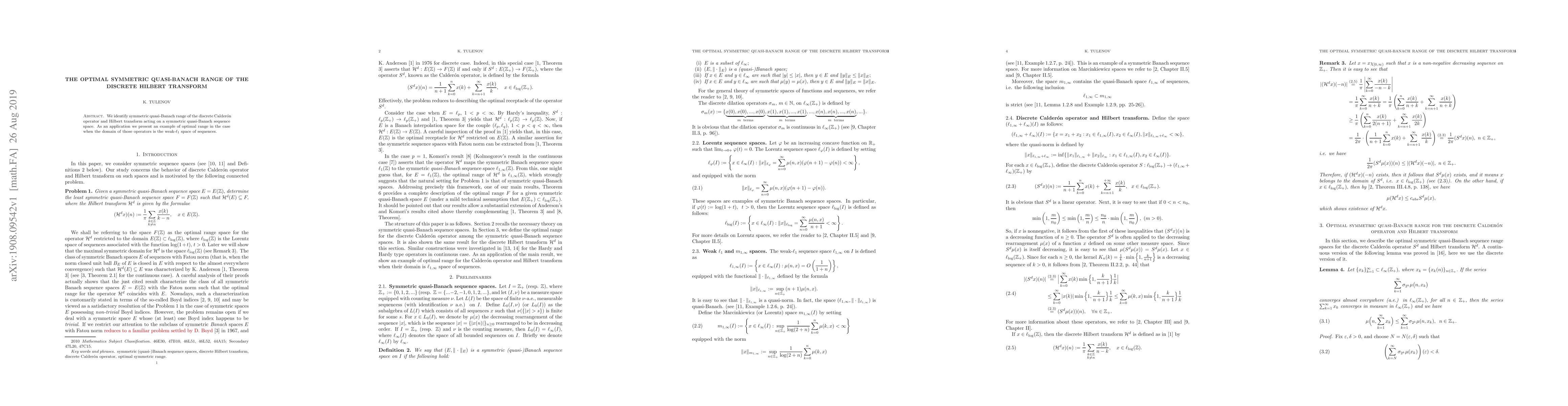 Summary: This paper identifies the optimal symmetric quasi-Banach range for the discrete Calderón and Hilbert transforms, specifically demonstrating an optimal range in the weak-$\ell_{1}$ space of sequences. The findings provide a comprehensive understanding of these operators' behavior in symmetric quasi-Banach sequence spaces.