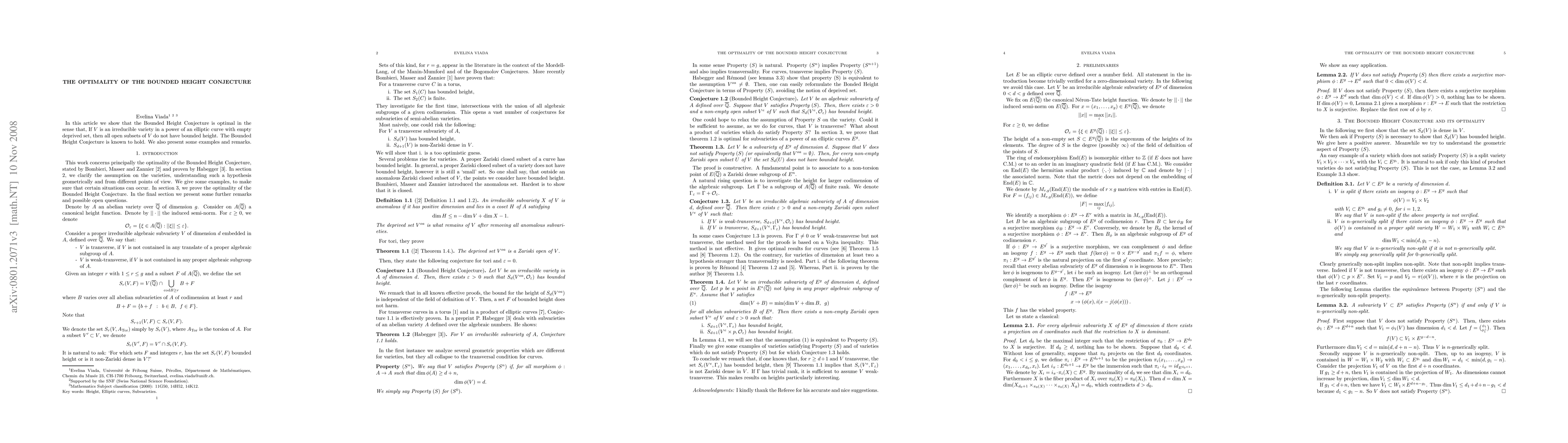 We show that the Boundedness Height Conjecture is optimal; all varieties in a power of an elliptic curve which do not satisfy the hypothesis neither satisfy the thesis. The Bounded Height Conjecture is known to hold for varieties in a power of an elliptic curve. We also present some examples and remarks.