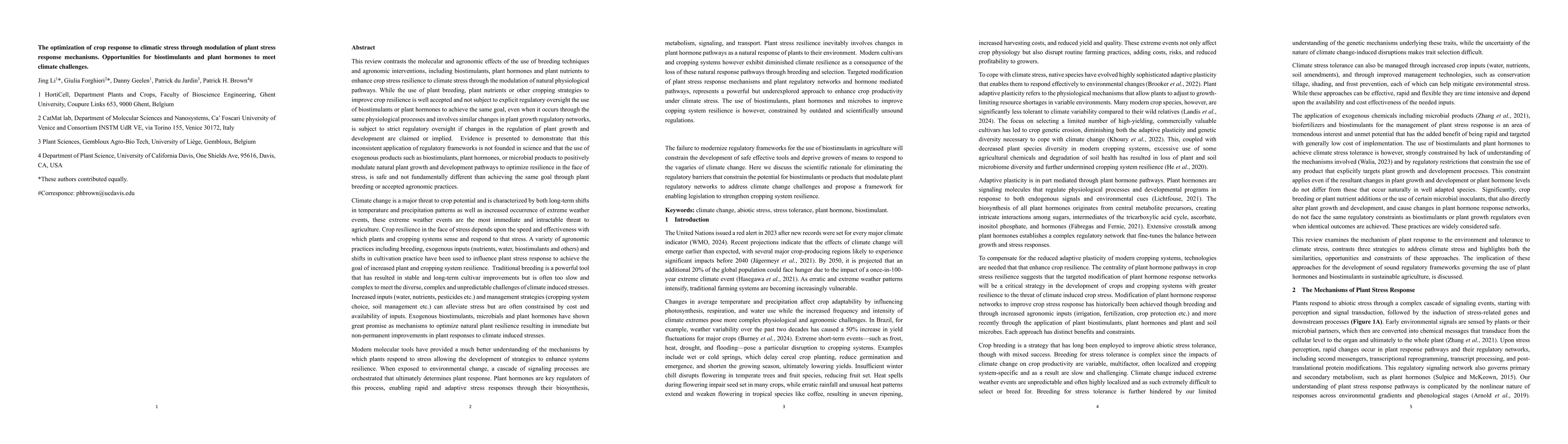 This paper explores ways to improve crop resilience to climate change through the use of biostimulants and plant hormones. It proposes a framework for enabling legislation to strengthen cropping system resilience in the face of climatic stress.