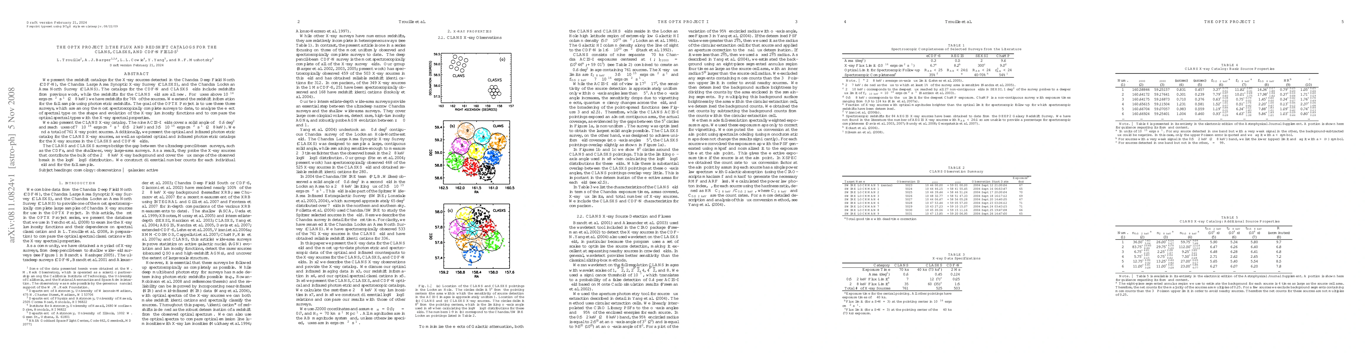 The OPTX Project provides redshift catalogs for X-ray sources in the CDF-N, CLASXS, and CLANS fields, with new redshifts for the CLANS field and photometric redshifts for the rest. The goal is to analyze the impact of spectral type on X-ray luminosity functions and compare optical and X-ray spectral properties.