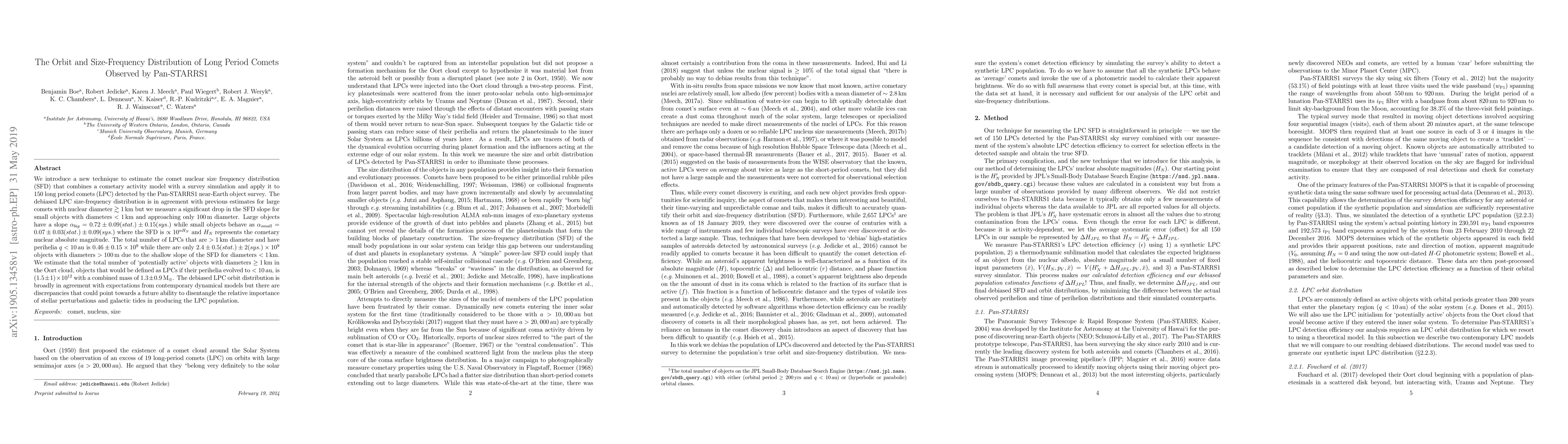 A study of 150 long-period comets detected by Pan-STARRS1 found that large comets have a typical size-frequency distribution with a slope of 0.72, while smaller objects show a significant drop in this slope, indicating a limited number of small comets.