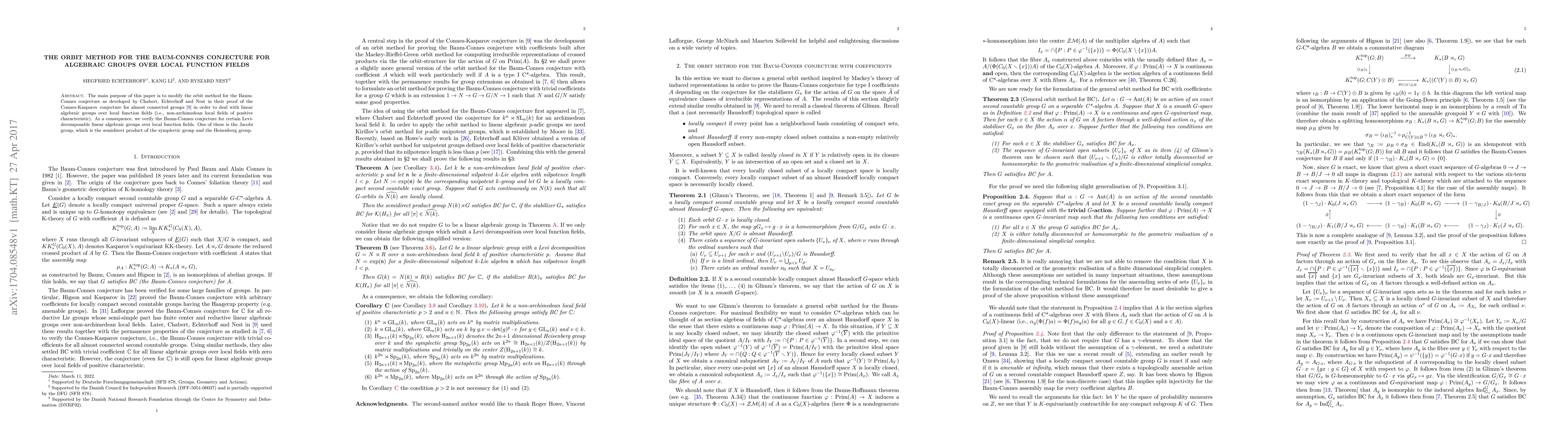 This paper adapts the orbit method to verify the Baum-Connes conjecture for linear algebraic groups over local function fields, specifically addressing the Jacobi group, a semidirect product of the symplectic and Heisenberg groups.