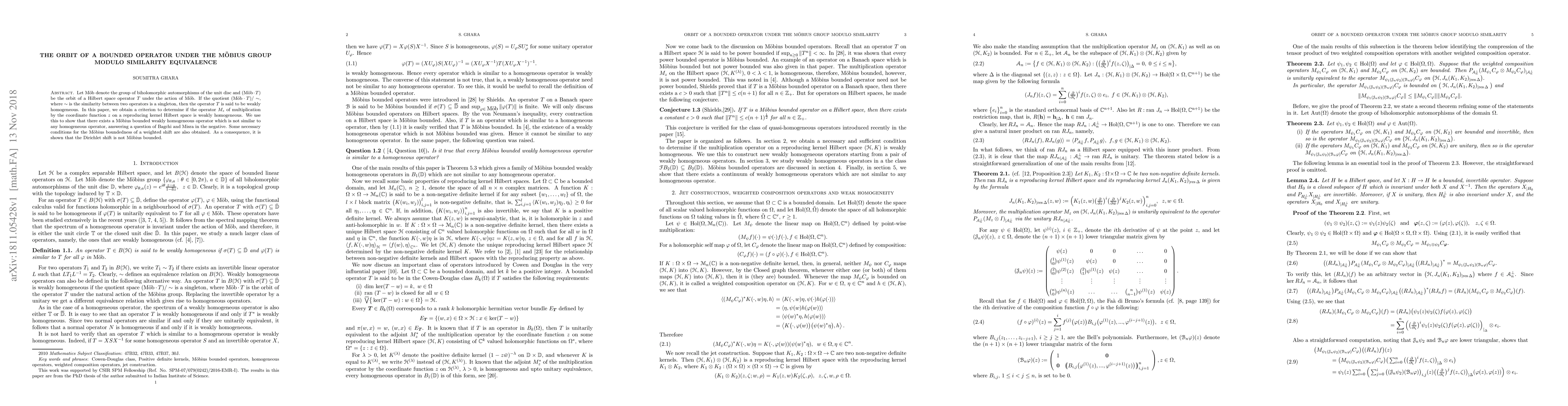 Let M\"{o}b denote the group of biholomorphic automorphisms of the unit disc and $(\mbox{M\"{o}b} \cdot T)$ be the orbit of a Hilbert space operator $T$ under the action of M\"{o}b. If the quotient $(\mbox{M\"{o}b} \cdot T)/\sim$, where $\sim$ is the similarity between two operators is a singleton, then the operator $T$ is said to be weakly homogeneous. In this paper, we obtain a criterion to determine if the operator $M_z$ of multiplication by the coordinate function $z$ on a reproducing kernel Hilbert space is weakly homogeneous. We use this to show that there exists a M\"{o}bius bounded weakly homogeneous operator which is not similar to any homogeneous operator, answering a question of Bagchi and Misra in the negative. Some necessary conditions for the M\"{o}bius boundedness of a weighted shift are also obtained. As a consequence, it is shown that the Dirichlet shift is not M\"{o}bius bounded.