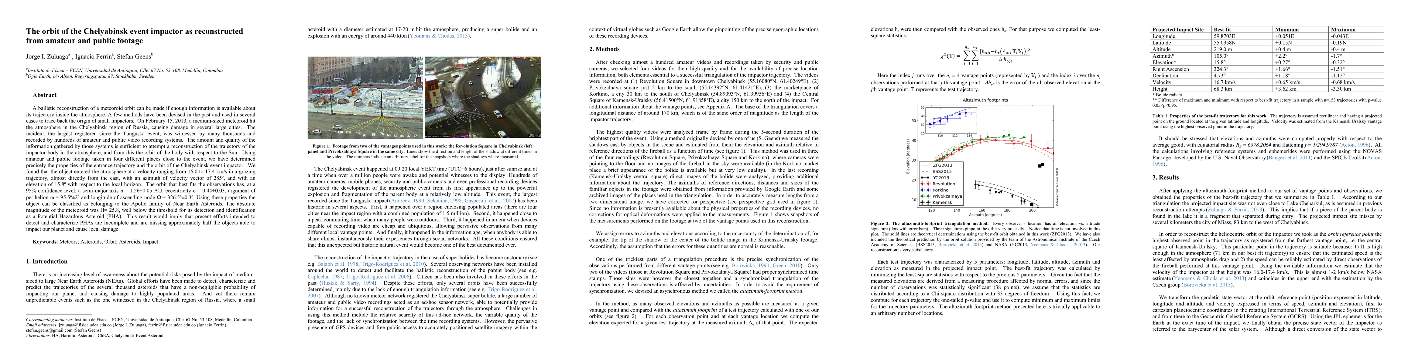 A ballistic reconstruction of a meteoroid orbit can be made if enough information is available about its trajectory inside the atmosphere. A few methods have been devised in the past and used in several cases to trace back the origin of small impactors. On February 15, 2013, a medium-sized meteoroid hit the atmosphere in the Chelyabinsk region of Russia, causing damage in several large cities. The incident, the largest registered since the Tunguska event, was witnessed by many thousands and recorded by hundreds of amateur and public video recording systems. The amount and quality of the information gathered by those systems is sufficient to attempt a reconstruction of the trajectory of the impactor body in the atmosphere, and from this the orbit of the body with respect to the Sun. Using amateur and public footage taken in four different places close to the event, we have determined precisely the properties of the entrance trajectory and the orbit of the Chelyabinsk event impactor. We found that the object entered the atmosphere at a velocity ranging from 16.0 to 17.4 km/s in a grazing trajectory, almost directly from the east, with an azimuth of velocity vector of 285$^o$, and with an elevation of 15.8$^o$ with respect to the local horizon. The orbit that best fits the observations has, at a 95% confidence level, a semi-major axis a = 1.26$\pm$0.05 AU, eccentricity e = 0.44$\pm$0.03, argument of perihelion $\omega$=95.5$^o\pm2^o$ and longitude of ascending node $\Omega$= 326.5$^o\pm0.3^o$. Using these properties the object can be classified as belonging to the Apollo family of asteroids. The absolute magnitude of the meteoroid was H= 25.8, well below the threshold for its detection and identification as a Potential Hazardous Asteroid (PHA). This result would imply that present efforts intended to detect and characterize PHAs are incomplete.