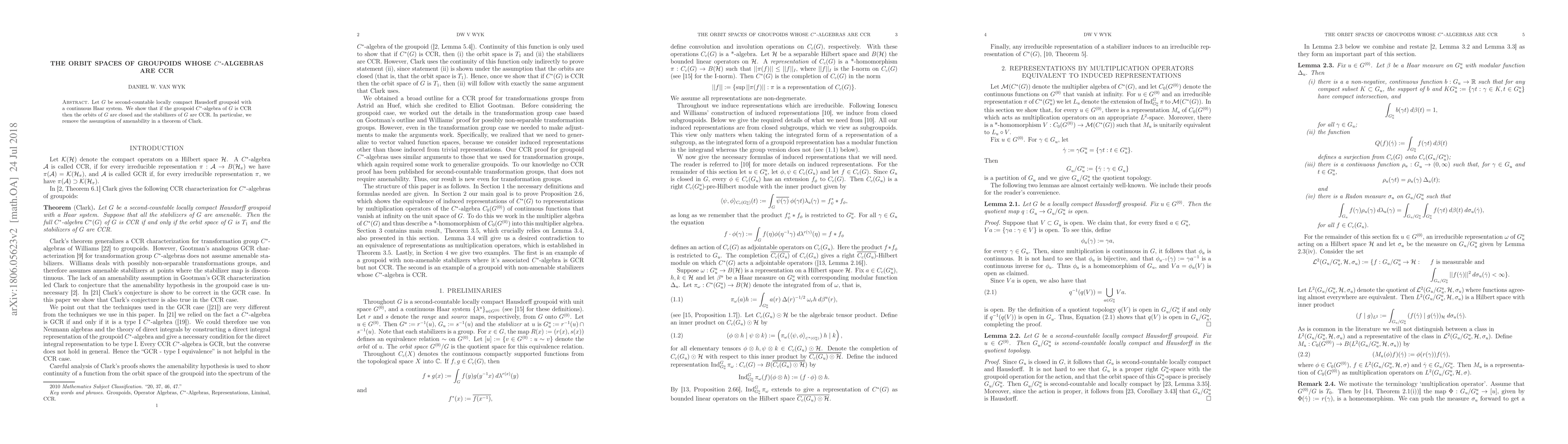 Summary: This paper removes the amenability assumption in Clark's theorem for groupoids whose $C^*$-algebras are CCR, proving that if the groupoid $C^*$-algebra is CCR, then the orbits of the groupoid are closed. The study focuses on second countable locally compact Hausdorff groupoids with a continuous Haar system.