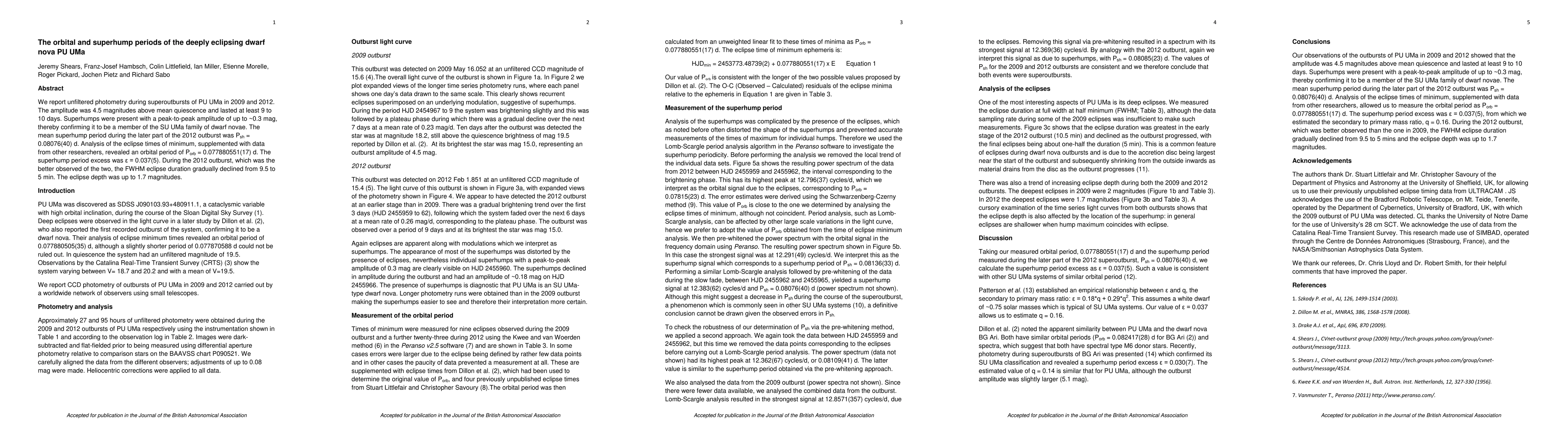This study reports on the superoutbursts of the dwarf nova PU UMa in 2009 and 2012, identifying superhumps and determining its orbital period as Porb = 0.077880551(17) d, with a superhump period of Psh = 0.08076(40) d. The analysis also revealed a gradual decline in the eclipse duration and a superhump period excess of epsilon = 0.037(5).