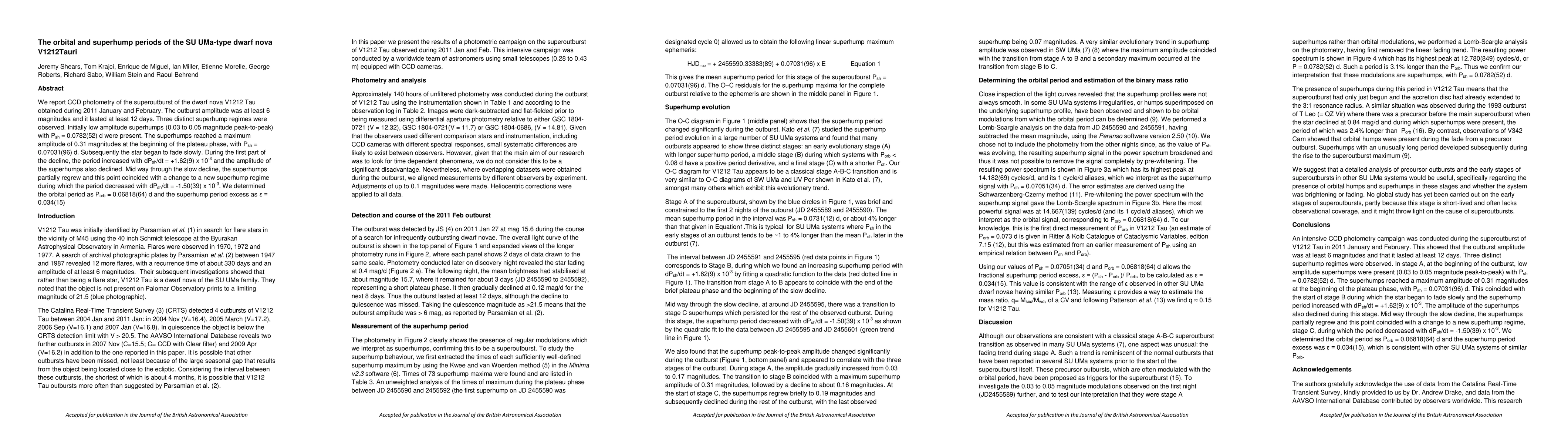 We report CCD photometry of the superoutburst of the dwarf nova V1212 Tau obtained during 2011 January and February. The outburst amplitude was at least 6 magnitudes and it lasted at least 12 days. Three distinct superhump regimes were observed. Initially low amplitude superhumps (0.03 to 0.05 magnitude peak-to-peak) with Psh = 0.0782(52) d were present. The superhumps reached a maximum amplitude of 0.31 magnitudes at the beginning of the plateau phase, with Psh = 0.07031(96) d. Subsequently the star began to fade slowly. During the first part of the decline, the period increased with dPsh/dt = +1.62(9) x 10-3 and the amplitude of the superhumps also declined. Mid way through the slow decline, the superhumps partially regrew and this point coincided with a change to a new superhump regime during which the period decreased with dPsh/dt = -1.50(39) x 10-3. We determined the orbital period as Porb = 0.06818(64) d and the superhump period excess as epsilon = 0.034(15)