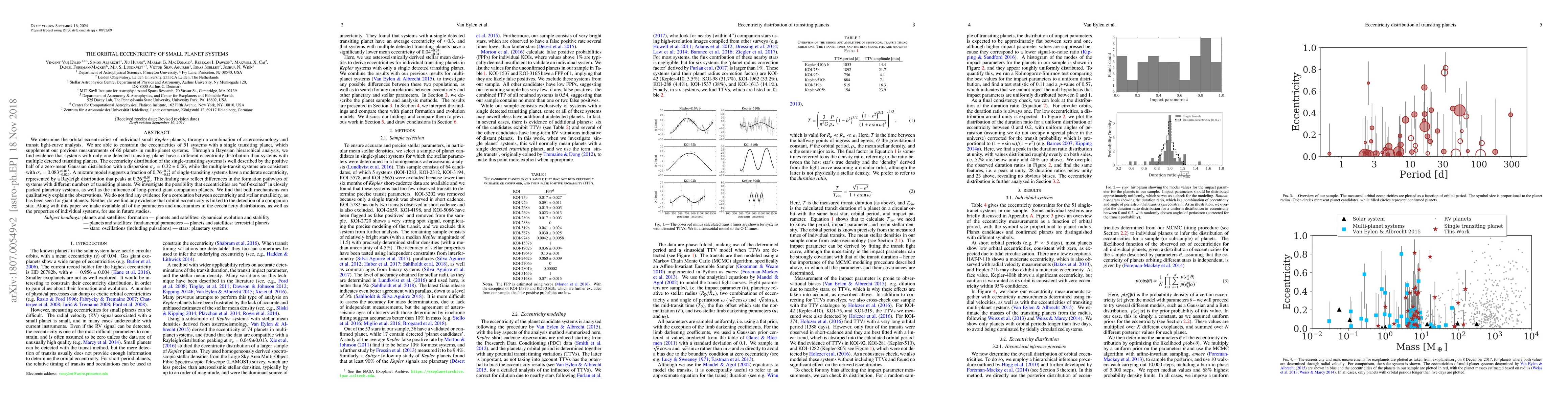 This paper investigates the orbital eccentricities of small Kepler planets using asteroseismology and transit light-curve analysis, finding that single-transiting systems have a higher eccentricity distribution compared to multi-transiting systems. The study suggests differences in formation pathways for these systems and finds no correlation with stellar metallicity or companion stars.