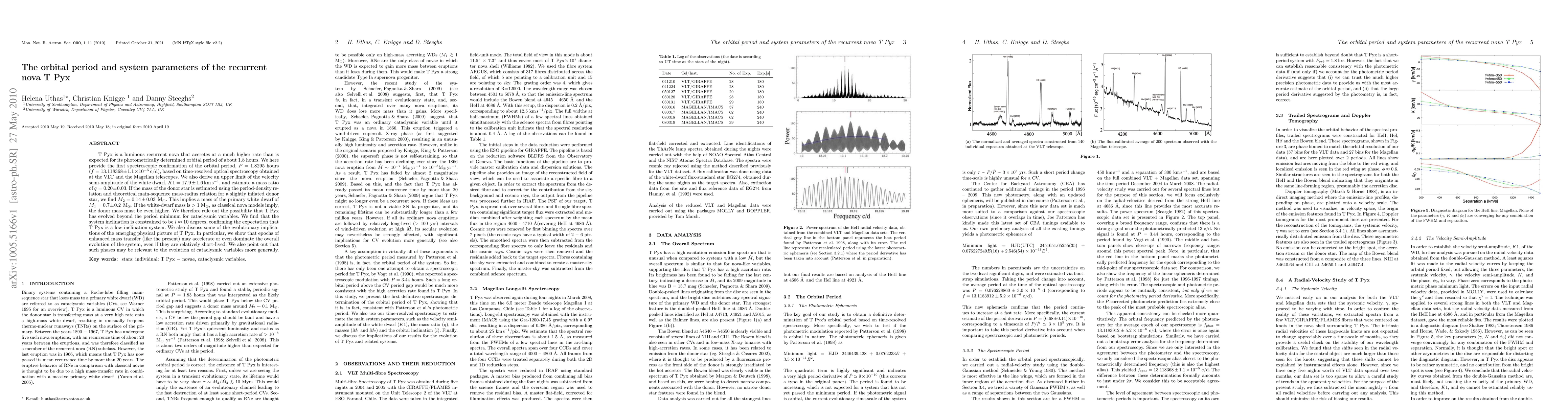 Scientists confirmed the orbital period of T Pyx, a recurrent nova, as 1.829 hours through time-resolved spectroscopy, challenging its initial estimate based on photometric data. The study also reveals constraints on system parameters, including a mass ratio and inclination angle.