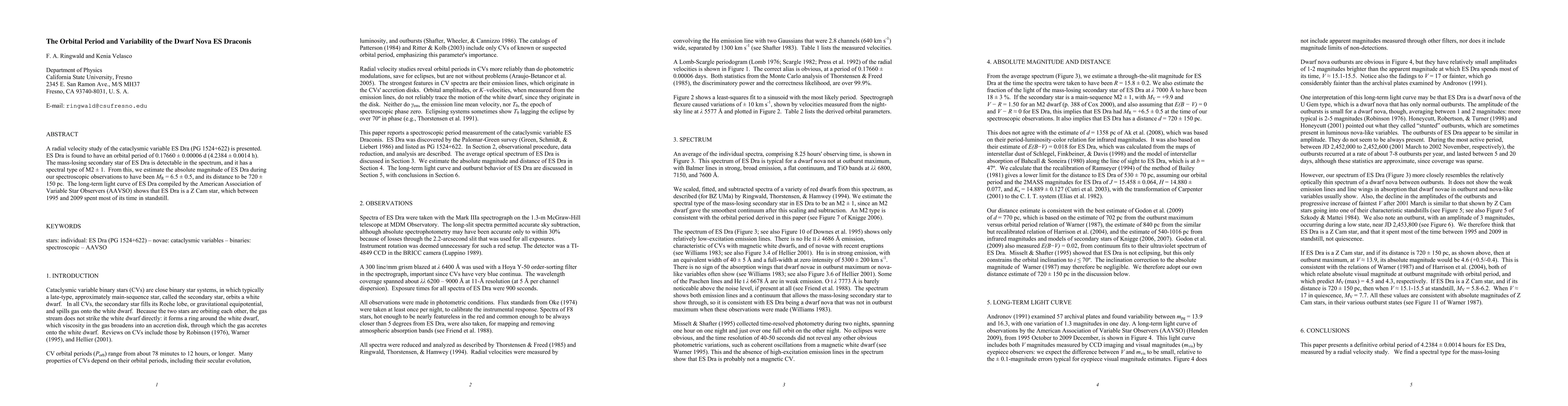 A radial velocity study of the cataclysmic variable ES Dra (PG 1524+622) is presented. ES Dra is found to have an orbital period of 0.17660 \pm 0.00006 d (4.2384 \pm 0.0014 h). The mass-losing secondary star of ES Dra is detectable in the spectrum, and it has a spectral type of M2 \pm 1. From this, we estimate the absolute magnitude of ES Dra during our spectroscopic observations to have been MR = 6.5 \pm 0.5, and its distance to be 720 \pm 150 pc. The long-term light curve of ES Dra compiled by the American Association of Variable Star Observers (AAVSO) shows that ES Dra is a Z Cam star, which between 1995 and 2009 spent most of its time in standstill.