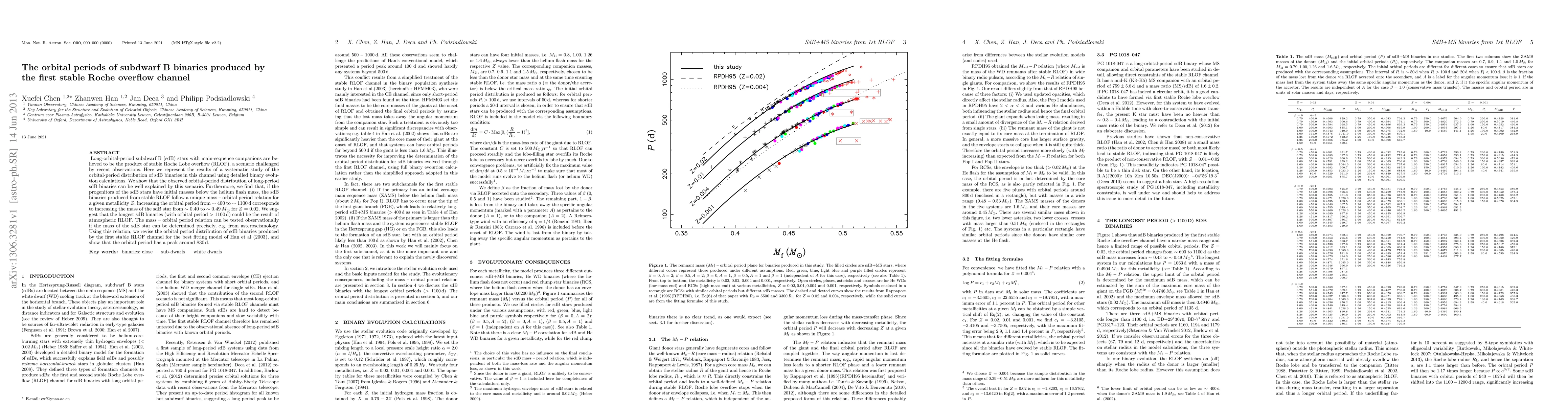 This study systematically investigates the orbital periods of long-period subdwarf B (sdB) binaries formed via stable Roche Lobe overflow, confirming this process explains the observed period distribution. The research reveals a unique mass-orbital period relation for these binaries, suggesting the longest-period sdB binaries may result from atmospheric RLOF.