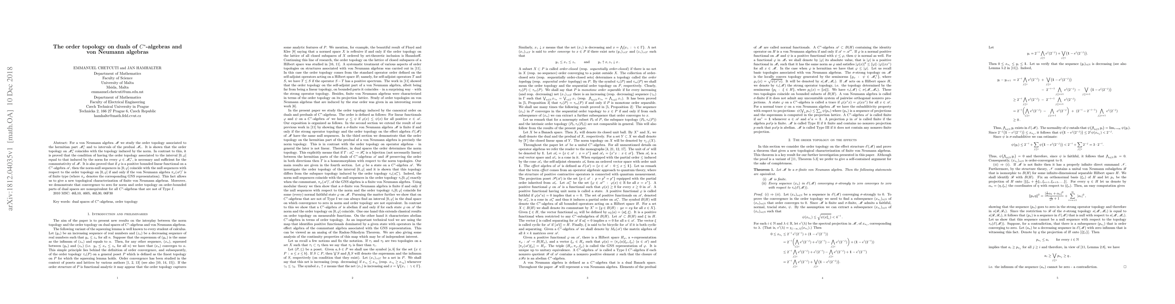 For a von Neumann algebra $\mathcal M$ we study the order topology associated with the hermitian part $\mathcal M_*^s$ and to intervals of the predual $\mathcal M_*$. It is shown that the order topology on $\mathcal M_*^s$ coincides with the topology induced by the norm. In contrast to this, it is proved that the condition of having the order topology associated to the interval $[0,\varphi]$ equal to that induced by the norm for every $\varphi\in \mathcal M_*^+$, is necessary and sufficient for the commutativity of $\mathcal M$. It is also proved that if $\varphi$ is a positive bounded linear functional on a C$^\ast$-algebra $\mathcal A$, then the norm-null sequences in $[0,\varphi]$ coincide with the null sequences with respect to the order topology on $[0,\varphi]$ if and only if the von Neumann algebra $\pi_{\varphi}(\mathcal A)'$ is of finite type (where $\pi_{\varphi}$ denotes the corresponding GNS representation). This fact allows us to give a new topological characterization of finite von Neumann algebras. Moreover, we demonstrate that convergence to zero for norm and order topology on order-bounded parts of dual spaces are nonequivalent for all C$^\ast$-algebras that are not of Type $I$.