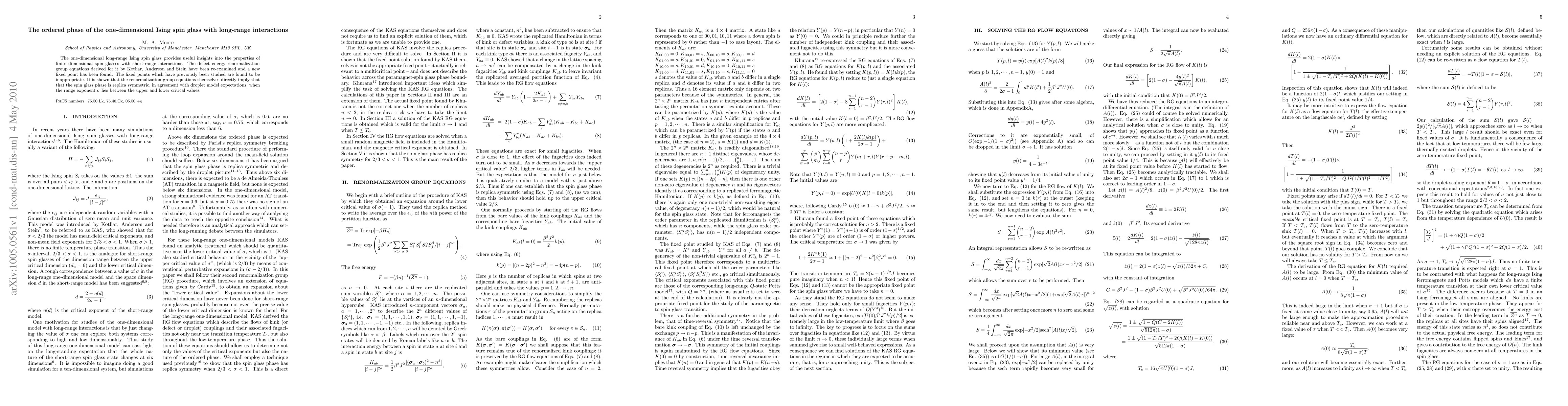 This paper re-examines the one-dimensional long-range Ising spin glass, identifying a new fixed point and demonstrating that the previously studied fixed points are inappropriate. The study concludes that the spin glass phase is replica symmetric when the range exponent lies between certain critical values, aligning with the droplet model.