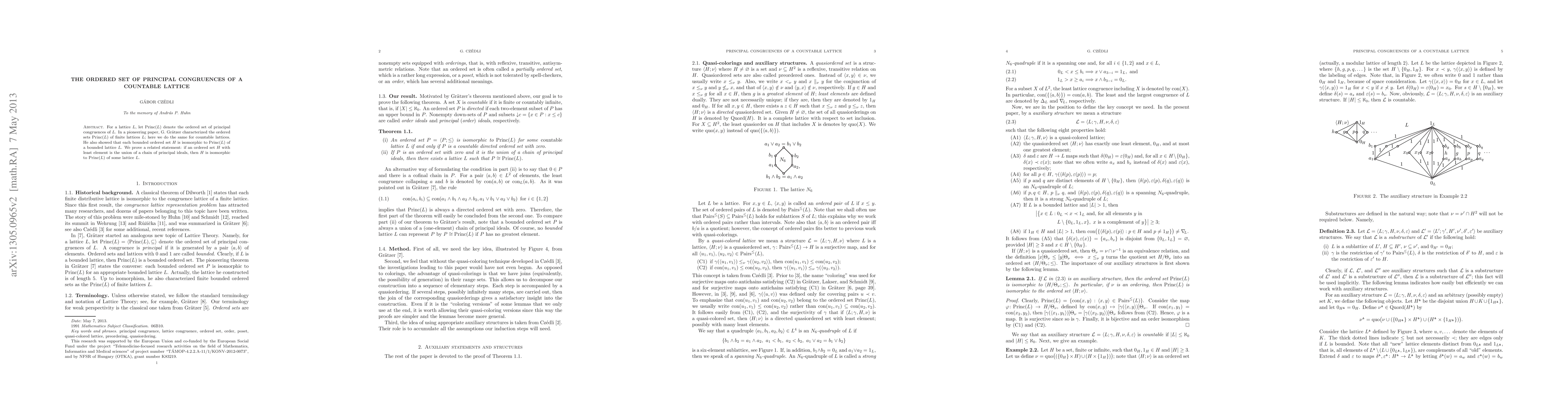 This paper characterizes the ordered set of principal congruences for countable lattices, extending Gratzer's work on finite lattices. It proves that any ordered set with a least element, which is a union of principal order ideals, is isomorphic to the principal congruences of some lattice.