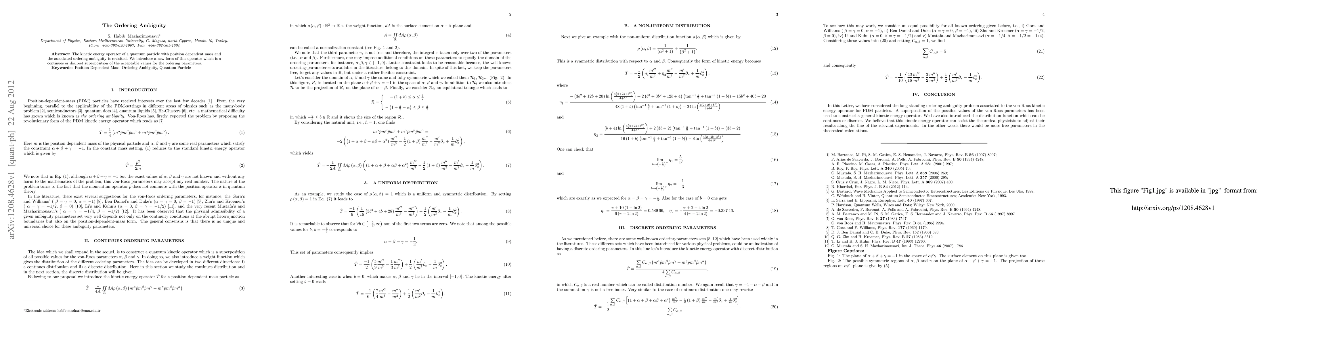 Summary: This paper revisits the kinetic energy operator for a quantum particle with position-dependent mass, introducing a new operator that represents a continuous or discrete superposition of acceptable ordering parameters to address the associated ordering ambiguity.
